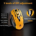Product parameter Product size: 118*79*40MM Product weight: 100G±5G Connection method: 2.4G wireless + Bluetooth 4.0 + Bluetooth 5.0 DPI: 800/1200/1600/2000/2400 Wireless carrier frequency: 2402-2480MHZ Rated working current: ≤8MA Charging input: 5V500MA Battery capacity: 500MAH Chip: PIXART 3212 Number of keys: 6 keys Operating system: WINDOWS XP and above series, suitable for universal mouse system(Windows 7 systems and below only support 2.4G wireless receiver connections) Powerful chip, PIXART 3212 Using the high-precision chip PIXART 3212 from the famous manufacturer, it is faster and consumes less power, and its performance can be fully released. It can achieve more precise movement whether in office or entertainment. Bluetooth three modes, can be used on a variety of devices The three Bluetooth modes are widely compatible and can be used on computers and tablets. It supports wireless 2.4G, Bluetooth 4.0, and Bluetooth 5.0, and can be quickly switched between 3 devices. Five levels of DPI, freely adjustable The five-stage sensitivity of 800-1200-1600-200-2400 is freely adjustable, suitable for different scenarios, making the mouse smoother. Doubled battery capacity, smart power-saving technology It uses a 500mah large-capacity lithium battery, which is 100% higher than the previous generation. With intelligent power-saving technology and lithium battery protection technology, the battery utilization rate is further improved. Matrix energy lamp, power visualization The innovative design of the power indicator light and the sci-fi color design are more in line with the style of the mouse itself. It also has a low battery prompt to say goodbye to power outage anxiety. Regarding safety, we protect everything The mouse is equipped with a variety of protection mechanisms, including overcurrent, overvoltage, overcharge, overtemperature, short-circuit protection, etc., to ensure safety and reliability during use. wireless mouse Limited time new product discount 60-6, quantity is limited, first come first served INPHIC A9 wireless mouse Bluetooth 5.0 mouse, Bumblebee version mouse, five-level DPI adjustable, large battery and long battery life, three connection modes Powerful chip, PIXART 3212 Bluetooth three modes, can be used on a variety of devices Five levels of DPI, freely adjustable Doubled battery capacity, smart power-saving technology Matrix energy lamp, power visualization Regarding safety, we protect everything mighty mouse bluetooth mouse bumblebee mouse Bluetooth 5.0 mouse