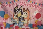 Bluey Birthday Party Supplies Banner Balloons Cake Toppers for Kids Party BLUEY DECORATIONS IN PINK BRAND NEW SHIPS OUT WITHIN 24hrs!! Includes: 1 Backdrop - Measures W 57" x H 38" 1 Happy Birthday Banner 18 Balloons 24 Cupcake Toppers 1 Cake Topper 1 Table Cover 6 Hanging Spirals Total of 52 pcs Make your child's birthday party a hit with these Bluey-themed decorations. The set includes colorful balloons, happy birthday banner, and cake toppers featuring the beloved cartoon character. Perfect for any kid who loves Bluey and animated cartoons, this party supply set is sure to bring joy to your child's special day.