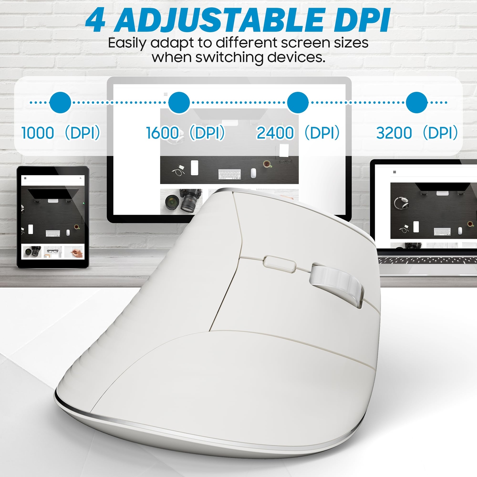 Bnnwa Wireless Vertical Ergonomic Mouse, Multi-Device(Bluetooth + 2.4G Connection), 4 Adjustable DPI, 7 Buttons Computer Mouse for PC, Laptop, Desktop, MacBook - White Description Color: White Ergonomic Design: The Bnnwa Vertical Mouse alleviates wrist strain by encouraging a more natural hand and wrist position, making your work sessions more comfortable and efficient. Multi-Device Connectivity: This wireless ergonomic mouse can connect up to 3 devices via Bluetooth or 2.4G receiver and switch between them with a single click, enhancing workflow efficiency. Wide compatibility: Works with desktops, laptops, Mac, iPad, Chrome, etc. you can easily switch between Windows and macOS with bottom button for consistent functionality. Convenient Button Functions: Forward/Backward buttons provide seamless browsing, and the Desktop button allows you to quickly display/hide the desktop. (Note: All buttons are non-programmable.) Long Battery Life: Includes an AA battery lasting up to 12 months, Enters power-saving mode after 8 minutes idle, press left or right button to wake up. Low battery indicator provides a week's notice before replacement needed. Shipping from the USA All of our products are shipped from the USA, ensuring quick delivery to your destination. Payment We offer the following payment methods: PayPal, credit card, bank transfer, and eBay's secure payment system. Free Shipping & Free Returns Shipping within the USA is FREE. Additionally, any return is absolutely free for you. Risk-Free Purchase You have the option to return an item within 30 days without any justification. We cover the return shipping costs! Fast Shipping We ship immediately upon receipt of payment. Generally, the package is delivered within 2-3 days in the USA. If it takes longer, we will contact you. Quality and Costs Made in Europe, USA, China No customs fees or additional charges Total satisfaction guarantee Invoice with declared VAT available upon request in .pdf format Feedback Your feedback is very important to us. After you pay for your purchase, you will automatically receive positive feedback from us.