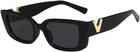 Int roducing the must -have accessory for every fashion -forward woman : Black Sung lasses with a stunning Gold V Accent . These sleek black rectangle frames add a touch of elegance to any look , while the trendy gold V adds a luxurious and bold statement . These sunglasses are the perfect blend of sophistication and trend iness , making them a versatile accessory for every outfit . Designed specifically for women , these black rectangular sunglasses are tailored to enhance your style . Em brace the Y 2 K era with these trendy 200 0 s sunglasses , adding a modern twist to nostalgic styles . Whether you 're dressing up for a special occasion or simply want to elevate your everyday look , these sunglasses are the perfect choice . Our trendy sunglasses for women come in diverse styles , catering to every mood and occasion . With these V -shaped sunglasses , you can express your individual ity and make a bold statement . The modern and ed gy design adds a unique touch to your outfit , making you stand out from the crowd effortlessly . Not only do these sunglasses elevate your fashion game , but they also offer UV protection to keep your eyes safe from harmful rays . So why wait ? Define your style and stay on -t rend with our Black Sung lasses with Gold V Accent - a must -have for any fashion -forward woman . Don 't miss out , get yours today