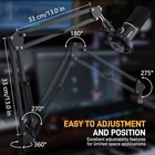 Return Policy Fast Delivery Trusted seller Boom Arm Microphone Stand: Adjustable Metal Suspension Mic Boom Arm for Podcast Gaming Streaming Recording,with Desk Clamp and 3/8" to 5/8" Screw Adapter-Max Load 1KG BA20 Black Product Description 【Stable&Reliable Performance】 boom arm BA20 is designed with a wide range of motion for precise microphone placement and minimal noise when repositioning the microphone.Sturdy steel construction and springs design is precision-engineered to support microphones weighing up to 2.2lb (1kg).This boom arm features a 5/8" to 3/8" screw adapter and a standard microphone clip that's compatible with most microphone.Ideal for podcasters,streamers,and gamers. 【Easy to Adjustment and Position】The reach and adjustability of a boom is essential for comfortable and efficient recording, and the BA20 allows the angle and height of the boom to be easily adjusted by simply loosening the knob,enabling silent and effortless positioning.Pull your microphone in when you need it, then push it away when you're done, leaving your desk or console a tabula rasa for creativity. 【Upgraded C-frame&More Stable】This boom arm stands out with its sturdy steel construction and sleek black finish,offers the right blend of functionality and aesthetic appeal.Upgraded desk clamp has a wider mouth to fit most desk thicknesses up to 2.2inch/5.5cm and has a rubber pad to protect the desk surface from scratches and scuffs.Note: It may not work with glass tables and microphones weighing more than 1kg(2.2lb). 【Strong Compatibility Boom Arm】 BA20 microphone arm stand features a 5/8" to 3/8" screw adapter and a standard microphone clip,compatible with many brands of microphones on the market.Including PD100X,PD200X,Fifine AM8,AmpliGame(A6V,A8),AM8,HyperX QuadCast,HyperX Solocast,Blue Snowball,Shure MV7,Shure SM58,etc. BA20 microphone arm stand is very friendly to recording beginner. 【Package】Includes microphone scissor arm stand x1,table mounting clamp x1,3/8" to 5/8" screw adapter x1,standard microphone clip x1,cable straps x2.Note:Ensuring your microphone is within its weight limit will ensure optimal performance.If you have any questions after receiving this product,please contact us as soon as possible. Shipping Returns Payment Shipping Shipping is FREE to all addresses other than APO/PO boxes in the lower 48 states. All our stock ships from US-based warehouses. Shipped via USPS or UPS (depending on location and package weight) Unless stated otherwise, all orders will ship within 24-72 hours of your payment being processed. Check our feedback to see the great reviews of FAST shipping we offer. Returns Seller does not accept returns Payment We currently accept payment via eBay managed payments only. Once payment is cleared, we will dispatch your shipment within 1-3 business days. Please refer to the "Shipping" tab for more information regarding shipping speed to your destination.