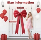 The product is a set of large red bow party decorations, measuring 25 x 60 inches. These decorative bows are perfect for birthdays and weddings, adding a festive touch to any celebration. Made in China, these high-quality bows are sure to make your event even more special and eye-catching.