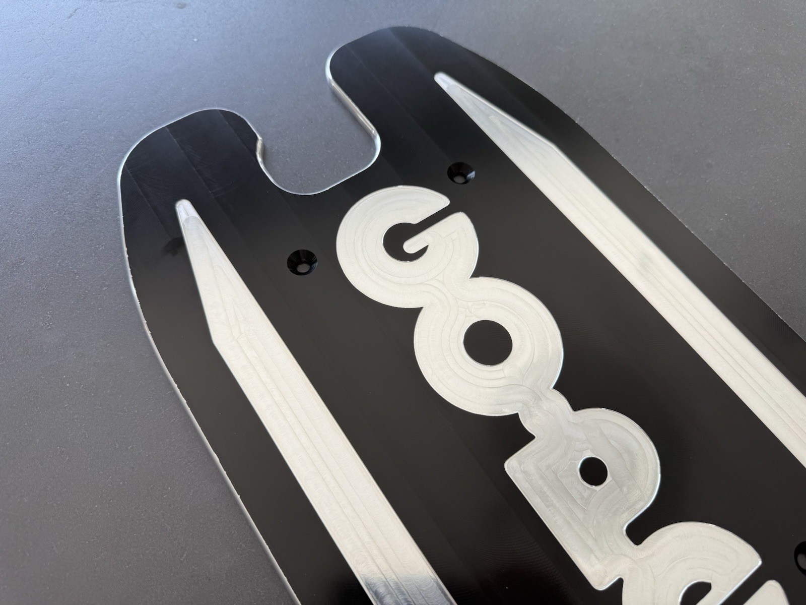 Billet aluminum deck for air tire goped models such as GSR46, GSR26, GSR40, and Bigfoot. Black anodized. Made in USA. 6061 aluminum.