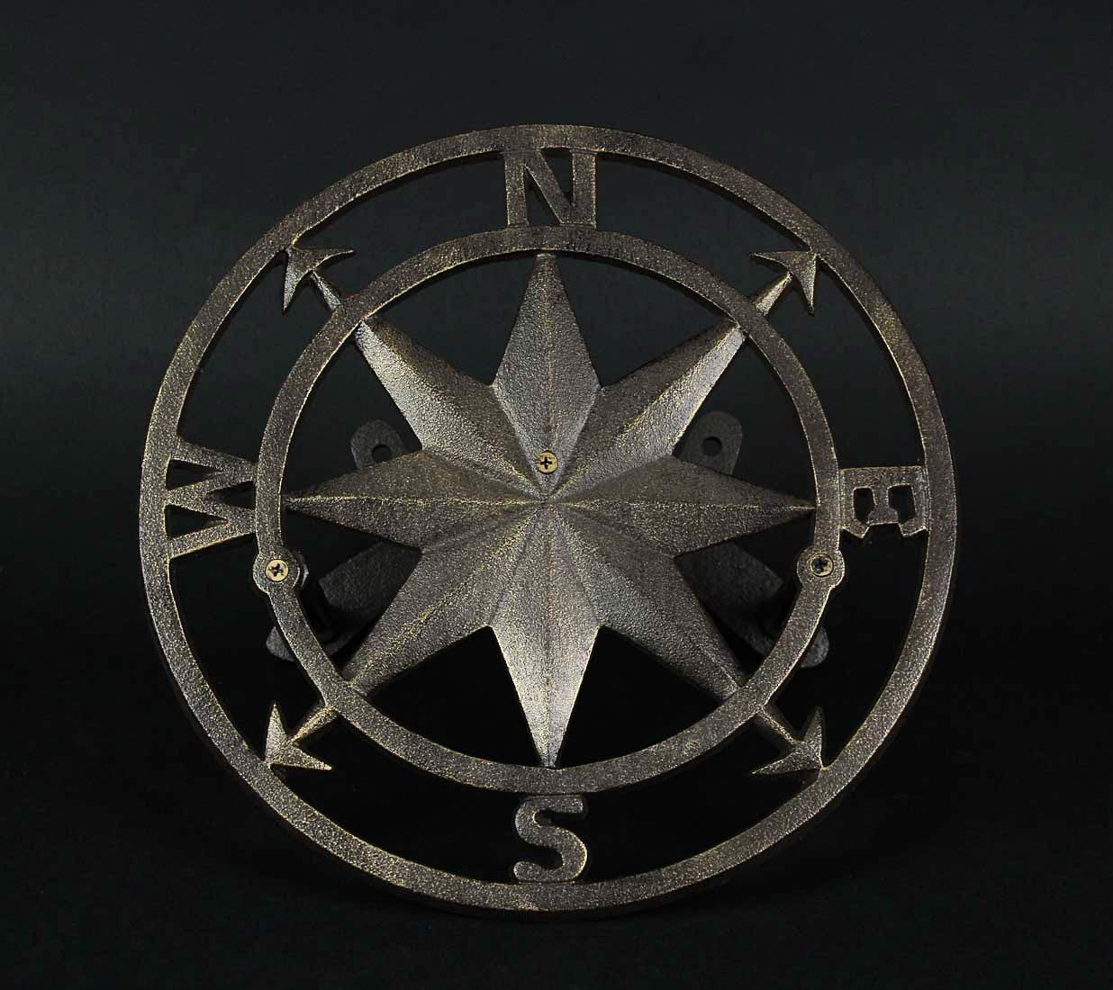 Elevate your outdoor space with this wall-mounted garden hose holder, combining functionality and aesthetics. Crafted from cast iron, its weather-resistant bronze finish and compass rose design add a touch of nautical charm to your garden. This decorative hose rack not only organizes your hose efficiently but also serves as a visual reminder of adventure and exploration. With a 12-inch diameter face and a 5.5-inch depth, it can hold up to 75 feet of hose, providing practical storage while enhancing your outdoor decor. The sturdy three-bolt setup ensures secure mounting, allowing you to hang it with ease. Its durability guarantees long-term use, making it an ideal addition to your garden, pool, or outdoor living area. This hose holder not only keeps your space tidy but also adds a decorative element, transforming your garden into a stylish retreat. Embrace the spirit of adventure and functional design, bringing both practicality and charm to your outdoor sanctuary. Enjoy the convenience of organized hose storage while appreciating the artistry of the compass rose-inspired holder, making your outdoor space both efficient and visually appealing. Generous Capacity - This hose holder boasts a 12-inch diameter face and 5.5-inch depth, accommodating up to 75 feet of hose, ensuring ample storage space for your outdoor needs. Robust Construction - Crafted from sturdy cast iron, this holder is designed to withstand the elements. Its weather-resistant finish guarantees durability, providing a reliable solution for your outdoor hose storage. Nautical Charm - Elevate your garden or patio with a touch of nautical elegance. The compass rose design not only organizes your space but also adds a dash of maritime flair, enhancing your outdoor decor. Adventure Inspired - Embrace the spirit of adventure in your outdoor oasis. The compass rose symbolizes exploration and direction, guiding your style choices while bringing a sense of wanderlust to your garden or pool area. Effortless Installation - Simplify your storage solutions with easy mounting. Featuring a three-point mounting system, complete with bolts and anchors, this holder ensures hassle-free installation, making it an ideal addition to your home, garden, or pool area.