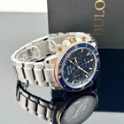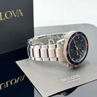 Make a splash with this stylish timepiece from Bulova's Marine Star Collection. The blue dial features chronograph sub-dials, rose gold-tone and white accents, and luminous hands and indices. Additionally, the durable rose gold-tone and stainless steel bracelet features a fold-over buckle closure for added security. 45mm stainless steel case 200meter water resistance Rotating bezel Blue dial with luminous hands and markers Blue chronograph with date window Domed mineral crystal Quartz movement Screw Down Crown Screwed Case Back Stainless steel and rose-gold tone bracelet with fold-over buckle closure 1/20 Second Chronograph Measures up to 60 Minutes Shipping: All items will be shipped within 2 days upon receipt of payment (except weekends and holidays). If Payments are received on weekends or holidays, goods will be shipped on the following business day. Buyer confirms (offers) address & Phone number after order item.If you need to change your address after placing an order, please contact me. We offer expedited service. If you need, please contact us. Returns: We support a 30-day return and exchange policy. If you are not satisfied with the product you received, you can contact us for a return or exchange. In order to be a full refund, less shipping expenses, your returned merchandise must be in its original new condition, as shipped, with all packaging, manuals, and paperwork intact and unaltered.