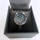 Bulova Marine Star Men New Black Grey Dial Quartz 98B401Chronograph Watch 41.5mm From the Marine Star Collection. Six hand calendar chronograph in stainless steel with black grey dial flat mineral glass, screw-back case, and fold-over closure with pushers, safety bar and extender. Watch Case Model: 98B401 Movement: Quartz Case size: 41.5mm Case thickness: 12.5 mm Case Material: Stainless Steel Watch Strap Band color: Silver Grey Material: Stainless Steel Dial Dial Color: Black Grey Crystal: Mineral Bezel: Fixed Luminous: Hands & Hour Markers Functions: Hour, Minute & Second Bracelet Material: Stainless Steel Bracelet Width: 20 mm Clasp Type: Buckle Water Resistant: 30m ( 100 ft ) Features Water resistance: 100 meters/330 feet One shell, one circle, two piece set, with a sense of layering Imported solid stainless steel strap with mirror polished and brushed effect; Two-Tone Gold Stainless Steel with Fold Over Clasp with Push Buttons with to match the hand shape. Fine polished copper needle, filled with super imported night light, can display time both day and night The multifunctional quartz movement imported from Japan, paired with high-power battery, has a normal lifespan of 48 months, and the calendar color has a noticeable effect Comes with: Gift box for better storage and portability. Transportation: The item will be shipped within 24 hours. Contact: If you have any questions, feel free to contact me at any time I will reply to you as soon as possible.
