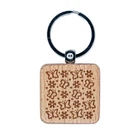 Butterflies and Flowers Engraved Wood Square Keychain Tag Charm