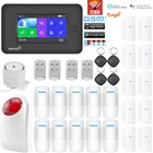1. Compatible with Alexa and Google home: This alarm sysetm works with Amazon Alexa and Google Home for voice control ( Alexa and google home devices not included ). Just ask app Alexa on your phone to Arm / Disarm/ the whole system in a specific instruction. Remote control your Alarm system anywhere in the world with your smart cell phone, no need repeated operation! 2. WiFi & GSM Support and Auto Dialer Function: This alarm system support different alarm message info(APP Message Push / SMS Message / Voice monitoring / Sim card phone call).Wifi way. It will push alarm notification via free app when it is triggered. GSM Way: Insert 2G SIM card into the alarm system and save your phone number on it, then it will send message or call your cell phone when alarm alerts. Product Overview Tuya IOS/Android APP WIFI GSM Home Alarm System+Wireless Strobe Light Siren Details Package Including: Home Alarm System Main Panel * 1 Pcs Wireless PIR Infrared Detector * 3 Pcs Wireless Door / Windows Sensor * 3 Pcs Remote Control Key * 2 Pcs RFID Tags * 2 Pcs Wireless Strobe Light Siren * 1 Pcs(135dB Loud) Wired Siren * 1 Pcs(110dB) Built-in Siren * 1 Pcs(70dB, the siren is built-in main panel) AC Adapter * 1 Pcs English User Manuel * 1 Pcs Question and Answer: Q: Can this alarm system work with Amazon Alexa or Google Home? A: Compatible with Alexa and Google home: This alarm sysetm works with Amazon Alexa and Google Home for voice control ( Alexa and google home devices not included ). Just ask app Alexa on your phone to Arm / Disarm/ the whole system in a specific instruction like "Alexa, please arm the alarm system". Remote control your Alarm system anywhere in the world with your smart cell phone, no need repeated operation! Q: Can this alarm system work with WIFI and GSM Sim Card together? So if the WIFI failure, can switch GSM mode to work. A:Yes. User can connect alarm system with WIFI and GSM Sim Card to work. And when Alarm System be triggered, it will push alarm message to the APP via WIFI. And if the WIFI failure, will change GSM mode auto Dial Out. Q: It just with WIFI in my house and without GSM Sim Card,can I use this alarm system? A: Yes. Alarm System can work in WIFI mode only. The alarm system only support 2.4G WiFi, NOT support 5G WiFi. Q: Can I add additional remote controllers, door sensors, pir sensors, smoke detectors, gas detectors or other sensors to work with this alarm system? A: Yes. Alarm system can work up to 99 wireless sensors(wireless freq 433MHz) and wireless Siren, unlimited Wifi Camera. Q: Does the alarm panel with backup battery? A: Yes. Alarm system with internal rechargeable backup battery. It can support work when AC Adapt is cut. Q: What's the function of RFID Tags? A: It used to touch the main panel to arm or disarm soon and easily. Main Function And Feature: 1. 4.3 inch Full Touch Screen TFT display screen, concise user interface and menu hint design 2. Main interface status bar, date/clock indication, fairly obvious alarm host status. 3. Built-in powerful performance CPU master based on 32-bit Cortex-M3 core 4. Based on u cos – III operating system with multitasking design, great user operation experience 5. WiFi/GSM/3G/GPRS intranet alarm system, support different alarm channels, like APP push/SMS/voice monitoring/intranet center etc. to ensure the alarm performance stable and reliable 6. Support SMS arm/disarm and voice arm/disarm 7. Support up to 100 learning/storage location for remote control, RFID cards and wireless detector 8. Support many defense zones, such as gate, SOS, bedroom, window, balcony, perimeter, smoke, gas, carbon monoxide, water leaking, etc. 9. Support the main power malfunction, backup power shortage, tamper alarm and other extended alarm. 10.Support entry/exit zone, indoor zone, perimeter zone, 24-hour zone, etc 11.Up to 5 groups preset alarm phone numbers, SMS on/off and dial on/off can be set respectively 12.Support external wireless siren, Support timing arm and disarm 13.Can store and inquire daily operation records and alarm records. 14.GSM network clock synchronization, to ensure accurate color, and support country time zone setting. 15.Support multi-language menu display, voice prompts and alarm SMS setting. 16.Can record 20 seconds voice message and alarm voice. 17.Telephone function, support 5 groups re-dial number. 18.User-friendly APP operation experience and user interface. Push Arm/disarm message to app. 19.Support APP remote arm/disarm, parameter setting and accessory management. 20.Online GPRS to obtain equipment status, automatic alarm when offline. 21.Reserved remote GPRS TCP / UDP protocol channel, compatible with multiple alarm center networking protocol to facilitate network alarm. Item Specification: 1. Home Alarm System Main Panel(Including Back-Up Battery and built-in siren) Wireless Frequency: 433(MHz) Built-in siren(70dB/m) Standby Current: less than 35mA Alarm Current:less than 120mA GSM transmission power: 2W WIFI Frequency: 2.4G, built-in wireless internet protocol IEE802.11b/g and TCP/IP protocol stack WIFI receiving sensitivity: -86dbm; Emitting power: 18dbm Input:AC100-240V, Output:DC12V-1A Control Range:250-500 Ft(in open area) Working Temperature: -15C~55C(5F~130F); Humidity:Less than 90% 2. Motion PIR Infrared Detector(Battery Included) Wireless Frequency: 433MHz Standby Current: less than 12uA, Alarm Current:less than 15mA Operation Temp: -10C~50C;Humidity:≤90% Installation Height: About 2M. Installation Angel:About 60~110 Detecting Distance: 5-8M Transmission Time≧1s Transmit Distance: Outdoor 100M(in open area), Indoor:10~15M 3. Door / Window Sensor(Battery Included) Wireless Frequency: 433MHz Operation Current:8~15mA, Quiescent Current:3uA Operation Temp: -10C~50C;Humidity:≤90% Installation: less than 15mm between 2 parts. Transmit Distance: Outdoor 100M(in open area),Indoor:10M 4. Remote Control Key(Battery Included) Wireless Frequency: 433MHz Operation Current:10MA , Sending Distance: Outdoor