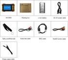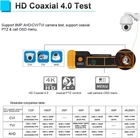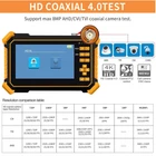 4.3 inch CVBS CVI TVI AHD 4 IN 1 CCTV Tester CCTV Camera Tester Support 8MP TVI CVI AHD CVBS Camera Tester 4.3 inches Screen RS485 PTZ Control Audio Test 12V Power Output 4.3 inch TFT-LCD screen, 480*272 resolutions 8MP TVI test, 3840 x 2160P 12.5/15 FPS, coaxial PTZ control & call OSD menu 8MP AHD test, 3840x2160P 15 FPS, coaxial PTZ & call OSD menu 8MP CVI test, 3840 x 2160P 12.5/15FPS, coaxial PTZ & call OSD menu CVBS camera test, PTZ controller DC12V/1A power output Audio in, support record and save the audio 3.7 V /5200mAh Li-ion Battery, after 5 hours charging, working time lasts 7 hours RS485 PTZ control, baud 600-115200bps, compatible with more than 30 protocols such as PELCO-D/P, Samsung, Panasonic, Lilin, Yaan, etc Mini 4.3 inch TFT-LCD screen HD CCTV tester is designed for maintenance and installation of HD coaxial cameras. Easy to carry. CCTV system installation and maintenance TVI CVI AHD CVBS camera testing UTC control Call OSD memu PTZ controller RS485 control Auto recognize HD coax camera type and resolution. HD code stream coaxial monitoring support max 8MP TVI/AHD/CVI/camera test, 3840 x 2160P, support UTC control and call OSD menu. Press "zoom+" button to call OSD memu. CVI coaxial camera test: · 720P 1280 x 720P 25/30/50/60 FPS, · 1080P 1920 x 1080P 25/30 FPS, · 4MP 2560 x 1440P 25/30 FPS, · 5MP 2592x 1944P 20FPS, · 6MP 2880 x 1920P 20FPS, · 4K(8MP) 3840 x2160P 12.5/15 FPS TVI coaxial camera test: · 720P 1280 x 720P 25/30/50/60 FPS, · 1080P 1920 x 1080P 25/30 FPS, · 3MP 2048 x 1536P 18/25/30 FPS, · 4MP 2688x1520P 15FPS 2560 x 1440P 15/25/30 FPS, · 5MP 2592x 1944P 12.5/20FPS, · 4K(8MP) 3840 x2160P 12.5/15 FPS AHD coaxial camera test: · 720P 1280 x 720P 25/30/50/60 FPS, · 1080P 1920 x 1080P 25/30 FPS, · 3MP 2048 x 1536P 18/25/30 FPS, · 4MP 2560 x 1440P 15/25/30 FPS, · 5MP 2592x 1944P 12.5/20FPS, · 4K (8MP) 3840 x2160P 15 FPS CVBS analog camera test: 1 channel BNC input, NTSC/PAL (Auto adapt). Support UTC control and call OSD menu. Press "zoom+" button to call OSD memu. Press and hold the menu button. Support RS485 control, Baud 600-115200bps, compatible with more than 30 protocols .Can set PTZ pan speed and tilt speed, can set preset position. In the Auto HD/CVBS IN interface, press “SET”, can set RS485 protocol, port, baud, address, PTZ, etc. Flashlight/Audio Input The flashlight function of the tester can provide lighting for you in a dark working environment. 1 channel audio signal input, test whether sound normal. Application Port DC 12V/1A, supply temporarily power for the camera. DC5V 2A power input. Universal RS485 interface, you can easily use it to control cameras and other devices with RS485 interface. Packing Listing 1*Camera tester 1*BNC cable 1*Power adapter 1*Power output cable 1*Audio cable 1*RS485 cable Coaxial CCTV Monitor Parameters Packing list 1) Tester 2) 5V 2A USB charging cable/BNC cable/RS485 cable/Audio cable 3) Li-ion battery (3.7V DC 4000mAh) 4) Manual