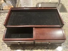 Stylish, elegant and functional charging station that also serves as storage/organizer for all of your small items such as keys, jewelry or knickknacks. A perfect solution to declutter and hide excessive wires for a tidier and cleaner look. A great addition to any office, den, bedroom or kitchen! Measures 16" length X 12" width X 6 1/4" height.