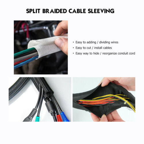 morethink , as an expert in the field of cable management,insist on providing customers with the top quality wire management products. Our cable management is used to wrap and protect wires & organize cables & hide and conceal wires in many application, e.g. Automotive,electronics, home and office etc. What is it used for? Braided wire loom helps protect and organize your wires, and can be used wherever wires exist. Popular uses include electronic cable management and automotive wire harness containment. How does it work? Split-sleeve design easily slips onto existing wires. Braided PET polyester is somewhat stiff and is resistant to abrasion, cuts, chewing, and heat. Do you have these problems? ⭐Our cable management sleeve is used for Hifi speaker hdmi automotive wires. ⭐Our cord protector keeps cat from chewing cables. Our cable protector is insulated. ⭐ e.g. Use For Automotive,electronics, home and office etc. The "split" design means you could add additional wires later and ensures easy access.Convenient for you to manage the wire. ⭐Our cable management sleeve is used for Hifi speaker hdmi automotive wires. ⭐Our cord protector keeps pets from chewing cables. Our cable protector is insulated. ⭐ e.g. Use For Automotive,electronics, home and office etc. Split Braided Cable Tube Can help you!!! Braided Split Cabling Management Sleeving suitable for various electric insulation The sleeving is split for quick and easy installation.no need to remove harness or remove plugs. 【Expandable & Flexible】- Our wire loom is split and easy to load wires. Once loaded, our braided cable sleeve will close on itself and perfect wire wrap. 【Neat & Tidy】- Say goodbye to cluttered cabling eyesores that are impossible to ignore. Our Split expandable braided cable organizer will keep your wiring setup organized and tangle-free. Ensures that the cables behind remain neat and tidy. Flexible braided material ensures it won't scuff up the room either. 【Adjustable & Easy to Install】- Protective cable covers can be cut to any length to match your organization needs. You do need to ether cut it with a HOT KNIFE to prevent fraying or melt the ends a bit with a lighter after you cut it. 【Convenient & Popular】The split design let wires come out anywhere because of “split”. No need to pass through wire plugs if wires and plugs cannot be separated 【Scope of application】High Quality, Split Braided Cable Sleeving Wrap Perfect for Industrial, Automotive, Household, and Marine Applications.application in wire harness, automatic equipment, railways, general manufacturing industry where wires and tubes need a tough and durable protection. 【Effect】resistant to various abrasions, reduct damage,arrange the harness cable.Prevent Pet From Chewing Cords 【Electrical wire routing solution】Self Wrapping Split Braided Sleeving for cable management (woven mesh tube) is braided by environment friendly polyester monofil. Split Braided Cable Sleeve Wrap are with good flexibility, fire resistance, abrasive resistance and thermal insulation performance. Our cable management sleeve: UL Recognized We are the direct source. We do wholesale for small businesses and manufacturer(s). Please call or send us a message through the eBay messaging system for a quote for wholesale pricing for rolls and bulk orders.