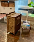 Beautiful vintage televsion with only one very worn slide. The books and newspaper in the magazine rack are copies on like paper. Please see photos. Smoke free home and will always combine shipping