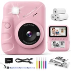 [Larger Screen & Smoother] CalineGam kids instant print camera has been upgraded with a 3.0-inch screen that offers enhanced smoothness and superior visual effects. And the kids camera supports up to 48MP photos, you can capture intricate details in photos and print high-resolution images without losing quality. [2 Printing Modes & 7 Density Options] The instant camera for kids supports two distinct printing modes: grayscale mode and dot matrix mode. You can choose the appropriate mode according to your specific needs for image output. In addition, the child instant camera has 7 printing densities to choose from, which can capture more details through different printing densities. [Multifunctional Fun Instant Camera] The children's camera can print photos in just a few seconds with one click, and also has functions such as video recording, time-lapse photography, continuous shooting, flash, MP3, etc. A variety of different filters and cute photo frames enhance children's imagination and creativity. [Large Battery Capacity & 5 Games] The kids digital camera has a built-in 1000mAh rechargeable battery, which can work for up to 3-4 hours of continuous photography after being fully charged. The included 32GB card ensures ample storage space for thousands of photos and videos. There are also 5 games that can help children relax and exercise their brains. [The Gift for Boys and Girls] Our kids instant camera is perfect for kids who are just learning to explore photography. It comes with fun features like filters, stickers, and simple editing tools that can spark kids creativity. The childrens camera can be a great gift! As a gift for Christmas, New Year, holidays, birthdays, and other special occasions for boys and girls aged 3 to 12 years.