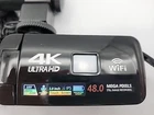 The DVC 4K ULTRA HD Camcorder features a 48MP resolution and a 3" touchscreen. It includes built-in Wi-Fi for easy connectivity, a built-in microphone for clear audio, and a removable SD storage option. The camcorder is handheld and has a digital zoom of 18x. It is black in color and has a LCD screen for viewing recordings. The model is ideal for capturing ultra high-definition videos. What's in the box: Camcorder Soft case Microphone with wind screen 2 rechargeable batteries and charging cradle Lens cap and sun covers Remote control