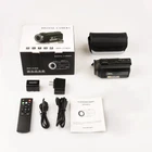 Specification Product Name 4K Video Camera Model Number HDV-254KM Image Sensor 12 Megapixels CMOS sensor Image Resolution Up to 48MP Video Resolution Up to 4K 60FPS Maximum Aperture and Focus Length F/2.0 f=7.36mm Built-in Memory Size No built-in Storage; Support max 128GB SD card Screen 3.0-inch IPS touch display with 270 degrees rotation Zoom 16X Digital Zoom Private Mold Yes Brand Name OEM Place of Origin Shenzhen CHINA Color Black Additional Function Recording Function, Nightshot, Rotating LCD Screen, Face Priority, Low Illumination Camera Function, Motion Detection System Language English, French, Spanish, Portuguese, German, Italian, Simplified Chinese, Traditional Chinese, Russian, Japanese, Turkce, Nederland, Polski, etc. System Language can be customized, please contact us. Features Remote Photography / Anti-shake / Face Detection / Support External Microphone, Fill Light / Night shot with Infrared Radiation / Motion Detection Battery Life Recording less than 90 minutes, taking pictures ≤ 150 minutes External Hot shoe for Microphone, Fill Light Port USB mini-B / HDMI / microphone Accessories One User's manual, one USB cable, one HD cable, one Charger, one DV bag, one lithium battery Product Net Weight 262g(without battery) Product Size 120*58*60mm Product Pack Size About 180*149*108mm Carton Size & Weight Lid and base box: 460*202*464, 12pcs/carton, 11.76kg/carton Color printing box: 465*202*480, 12pcs/carton, 12.79kg/carton Product Description Statement : The price may not include memory card, microphone, fill light, hood and tripod. If you have any questions, please contact us. Tips: Different Plugs for UK/US/JAPAN/EU are all available. Full Accessories Show Tips: The price may not include memory card, microphone, fill light, hood and tripod. If you are interested in our products, please contact us for a quotation. All the accessories shown is available.