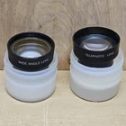 This is a pair of used Camcorder Lenses made in Japan by Sears. The set includes a wide angle lens and a telephoto lens, which can be attached to the camera using the lens fitting specified. The lenses are in very good condition and are suitable for use with cameras and lenses that have the same brand and type as specified.