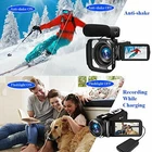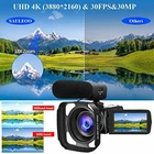 Camcorder Video Camera 4K 30MP Digital with Microphone V14NN Product Details 【4K 30MP Camcorder】: This digital camcorder records video with ultra HD 4K/30FPS video resolution and takes photos at 30MP images to a whole new level. 【Video Camera with Mic】: This video camcorder is designed with a hot shoe interface that can be used to install an external microphone if required. Every time when you use external microphone, that it will effectively improve the clarity of the recording and reduce noise.Also the lens hood works great! It can block excess light and protect your camcorder lens from accidental damage.It improves the photos overall color and contrast. It is ideal for recording family events, parties, speech, etc. 【Webcam & Anti-shake Camera】: This video camera can be used as webcam with which you can use to have a video call with your friends and family by connecting the vlogging camera to your computer using the provided USB cable . You can also use the HDMI cable connect this camcorder directly to an HDTV and playback the videos you took in high . In addition, it also supports electronic anti-shake function, which can effectively improve the picture quality. 【Recording While Charging & Remote Control】: This video camera is lightweight and easy to carry, which comes with a built-in microphone and speaker. This camcorder supports recording videos while charging.So you won't need to stop recording when the battery is running out during video recording. It has many other functions including: beauty function, face recognition, continuous shooting, self-timer and more. This digital cameras is perfect for recording the beautiful moments of your life. 【Friendly Product Maintenance】: We provide a one-year product maintenance and service. If you have any questions, please feel free to leave your question on our sales page.The video camera supports up to a max 128GB External SD/SDHC card and you can install 1/4 inch standard tripod and external 37mm lens. (SD/SDHC Card, Tripod and External Lens All NOT INCLUDED). Warm Tips: 1.SD card should be purchased separately, please format before using the camcorder 2. Please remove the plastic cover before using the remote control, pointing the remote towards the vlogging camera and operating it within 22ft range. 3. You need to connect the microphone to the computer when you use the webcam function. 4.If the camera is not recognized by the computer due to system compatibility issues, please contact us. Specifications: Memory: expandable SD card / HCSD card to 128GB Lens: Fixed lens F / 2.6, f = 7.0mm Focus range: 3.3ft ~ infinity Image Format: JPEG Resolution: 30M, 24M,20M Camcorder Video Format: MP4 Resolution: UHD 4K, UHD 2.7K(2688x1520), FHD 1080P, HD 720P Zoom: 18X digital zoom (MAX) Face capture: YES Beauty photo features: YES Remote operation: YES (remote control) Anti-shake function: YES LED fill light: <1.0m range Photo: on / off Video: on / off Exposure compensation: -3.0EV ~ + 3.0EV Selfie: off / 2 seconds / 10 seconds USB port: USB2.0 (high speed) Automatic shutdown: Off / 60 seconds / 180 seconds / 300 seconds / 600 seconds LCD screen: 3.0 inch with touch screen HD output: HDMI output interface Video output format: NTSC / PAL Power supply: Lithium-ion battery NP-40 Weight: Approx. 9.70 oz Package Included: Video camera x 1 Microphone x 1 Remote Control x1 Lithium battery (1500mAh) x2 USB cable x1 Lens cover x1 User manual x1 Camera bag x 1 Lens hood x 1