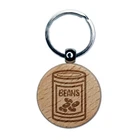 Can of Beans Engraved Wood Round Keychain Tag Charm