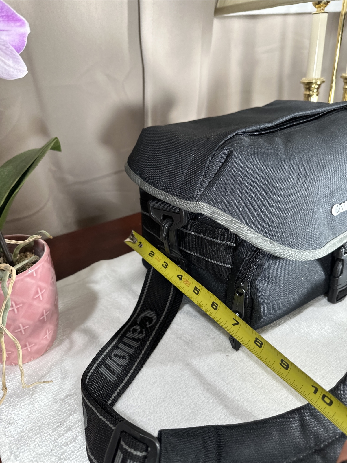To Fit:CameraMaterial:NylonFeatures:Accessory Compartments, Padded, With StrapType:Carry/Shoulder BagUPC:Does not applyCompatible Brand:Universalgtin13:Does not applyColor:BlackBrand:Canon