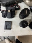 Capture stunning photos with this Canon EOS Rebel T7 DSLR camera and EF-S 18-55mm & 75-300mm IS II lens kit. This camera features a 24.1MP APS-C sensor, 1080i HD video recording, and a variety of features such as built-in flash, auto focus, exposure compensation, and red-eye reduction. The camera's maximum aperture ranges from f/3.5 to 5.6 and has a maximum resolution of 24.1MP. This digital SLR camera comes in black and is weather-resistant. It has a 3.0" fixed LCD screen and a range of connectivity options such as USB, remote control, and mini-HDMI. The camera's lithium-ion battery provides up to 415 shots per charge. Made in Japan, this camera is perfect for photography enthusiasts looking for a high-quality camera with multiple features.