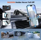 phone holder for car support you to install it on the dashboard, windshield or vent. You can choose the installation method that suits you according to the different designs and needs of your model. Our cell phone automobile cradles are easy to install in a matter of one minute, easy and fast installation saves time and effort. The phone holder for car uses a powerful 3-layer viscous gel and a 1-step locking mechanism to provide strong suction on a smooth surface without leaving any residue. You no longer have to worry about the bracket moving randomly while driving. The car phone mount adopts the latest long hook locking design which holds your phone securely to the vent. Stable support shelf, firm & scratch-free claw offer secure grip for your cellphone to ensure safer driving, to hold your phone firmly even on the bumpiest road or sharper turn. 360° ball joint and extendable telescopic arm (4.43"-7.31") allows your phone can be rotated easily to landscape and poraits as well as anywhere in between, unobstructed view design great for navigation, changing playlists, taking calls and more. The holder panel has been upgraded many times, making it more resistant to abrasion and corrosion, equipped with a thick silicone panel and adjustable bottom tray provides all-around protection to keep your phone from scratches and drops. TRU Material with better heat resistance, which is endurable for the extreme temperature of -4°F-230°F. One Size Fit All: Suitable for all (4.0"-7.0") mobile phone and mobile. Compatible Devices: Compatible with iPhone 14/ 14 Pro/ 14 Pro Max/ 14 Plus/ iPhone 13/ 13 Mini / 13 Pro/ 13 Pro Max/ iPhone 12/ 12 Mini/ 12 Pro/ 12 Pro Max/ 11/ 11 Pro/ 11 Pro Max/ XS/ XS Max/ XR/ X/ 8 Plus/ 8/ 7 Plus/ 7/ 6s/ SE etc, Compatible Samsung Galaxy S22 / S22 Ultra S21 Ultra 5G/ S20/ S20+/ Note10/ Note10+/ S10/ S10+/ S10e/ S9/ S8 etc, Compatible LG G8 G7 ThinQ/ G6+/ V50 V40 ThinQ/ V30/ Stylo 4/ Optimus, Compatible Google Pixel 4/ 4XL/ 3/ 3XL/ 2/ 2XL/ XL, Nexus 6P/ 6/ 7/ 5X, Compatible One plus Moto G7/ Z3, Nokia 7.1/ 6.1, etc. Compatible Thick Case: The depth of the holder is 1.18inch. Suitable for Most case and Battery case etc. Not suitable for thick (>1.18inch) wallet case, folio case. Features & details 🔥 [Three-in-one phone holder for car] Our phone holder for car allows you to install it on the ✔ dashboard, ✔ windshield or ✔ vent without leaving any traces. This mobile phone holder provides you with a simple way to securely fix your mobile phone in place, and is ideal for cars. 🔥 [Strong Adhesive Suction] The phone holder for car uses a powerful 3-layer viscous gel and a 1-step locking mechanism to provide strong suction on a smooth surface without leaving any residue. They will not fall off even when turning, bumping or driving at high speeds, and using TPU material can withstand temperatures from -4°F to 203°F. To restore the stickiness, simply rinse with warm water and dry. ❗❗ Please note, most likely will not work on leather/ vinyl dashboards. 🔥 [Easy operation, strong compatibility] One-handed lightly touch, release or lock the phone within a few seconds-super convenient to use while driving. The SUUSON car phone holder mount has adjustable feet, stronger and wider clips, making this phone holder for car suitable for all (4.0"-7.0") mobile phone and mobile. 🔥 [360°view angle available] 360° ball joint and extendable telescopic arm (4.43"-7.31") allow you to adjust the phone to any angle. This cell phone holder for car allows you to use your phone in portrait and landscape mode. Avoid obstructing the line of sight during driving to ensure driving. 🔥 [Perfect protection, best design] The car phone holder mount is covered with a thick layer of silica gel. The unprecedented design makes the mobile device zero scratches