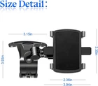 Car Phone Mount ABS Cell Phone Holder for Car 1400 Degree Rotation Dashboard 【1400° Rotation Car Phone Holder】: The dashboard clip-on holder has multiple flexible connectors that allow you to switch between landscape and portrait screens, giving you a 1400 degree view. Meet the demand of any angle, ensure driving safety. It does not block the driver's line of sight. You can adjust the phone's angle of view as needed without having to bend your head to adjust to where the phone is. 【Practical Materials】: This car phone holder is made of ABS and metal material, the clip base is made of non-slip silicon pads, and the multi-angle splint design can be attached to the car dashboard or curved surface to secure your device. It won't damage the dashboard surface, and it prevents your phone from scratching and dropping. 【Multiple Use】: The phone mount is suitable for many scenarios. Besides being used for car dashboard, rearview mirror and sun visor, it can also be clipped to the edge of a desk and used as a desktop phone holder. This phone stand keeps the phone in your sight, you don't need to try to find the phone screen very hard, eases the burden on your neck and eyes, and you can drive more intently. 【Easy Installation】: Car phone bracket can be used in multiple positions and angles. The spring will neither make noise nor easy to loose. Pull it open, clip it to the dashboard, and the installation is complete. You can install or release the phone in seconds with one hand, making it very easy to use. You can drive safer and easier. 【Wide Compatibility】: Car phone holder is suitable for 3-7 inch phones, suitable for most smartphones, such as iPhone 12/12 Pro/12 Pro Max/11/11 Pro/11 Pro Max/XS/XR/X/8/7 and more smartphones. When you don't need to use the phone, you can push the holder down to hide it. ------------------------------------------------------------------------------------------ Shipping Policy: Domestic lower 48 states shipping is free and expedited. Shipping is also free to the rest US states and US Protectorates including Puerto Rico, Alaska, Hawaii, APO/FPO, but delivery times are longer than usual. If you need your order by a specific date please contact us before you make the purchase for a delivery estimate. ------------------------------------------------------------------------------------------ Return Policy: Your satisfaction is guaranteed! If for any reason you are unhappy with your item, just return it within 30 days for a full refund. Please contact us prior to initiating a return so that we can issue you a refund authorization.