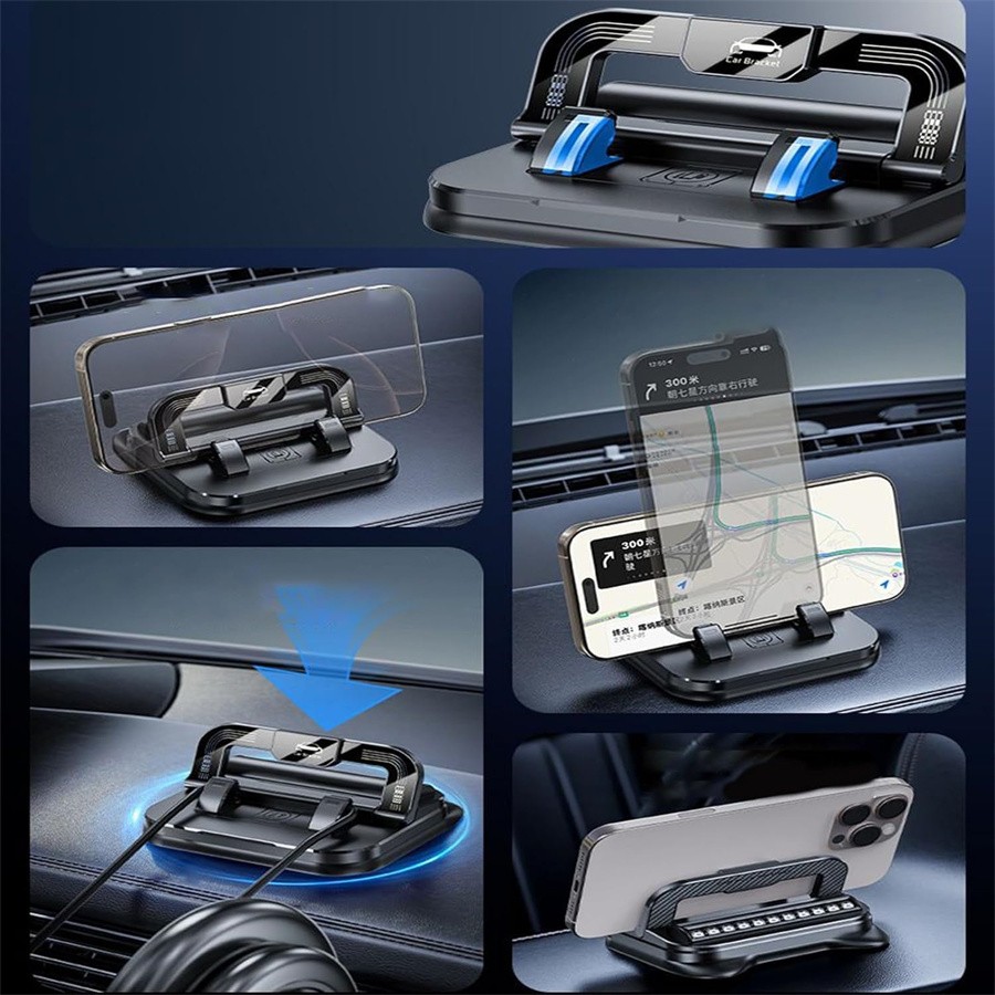 Product Description: Upgrade your in-car experience with the 360° Rotation Car Phone Holder. Engineered for stability and versatility, this holder features a strong suction cup base and silicone grips to keep your phone secure on the dashboard, even through sharp turns or sudden stops. With full 360-degree rotation and adjustable horizontal/vertical angles, it’s perfect for navigation,hands-free calls, or streaming media. The universal design fits all iPhone and Android devices (4.0–7.0-inch screens), while the built-in parking ID plate functionality adds extra convenience for urban drivers. Installation is effortless—just attach the suction cup to your dashboard and adjust the holder to your desired position. Whether you’re commuting, road-tripping, or navigating city streets, this holder ensures your phone is always within easy reach and at the perfect viewing angle. Specification: Product Name: 2-in-1 Car Phone Holder Product Dimensions: 9.5*10.5 cm / 3.74 in * 4.13 in Color: Black Function: Phone holder, parking number plate Advantages: Strong silicone, stable and won't fall off, high load capacity Material: ABS Package Includes: 1pc Phone Holder NOTES: Avoid temperature extremes during initial setup. Ensure the base is clean and dry before installation for optimal adhesion. Color may not appear as exactly as in real life due to variations between the computer monitors.
