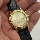 Cartier Cougar Chronograph 18K Gold Quartz Watch Deployment Buckle & Box • Cartier Cougar • Quartz Movement • 18K Yellow Gold Case • Synthetic Sapphire Crystal • Chronograph Function • New Black Crocodile Strap • Silver Dial with Gold Hands • 18K Yellow Gold Cartier Deployment Buckle • Water Resistant • Swiss Made Comes With Cartier Box! Guaranteed 100% Authentic or Your Money back! Look at my feedback for OVER 26 years and Buy with total confidence! We do not advise you to wait until the end of the auction to bid on this piece. This item is also for sale now in our retail store until a bid is placed. If you are in the South Florida area you can always come in and look at my merchandise. Be sure to check out my other auctions. Look at my feedback and buy with total confidence!