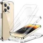 Case for iPhone 14 Pro 6.1-Inch (NOT for iPhone 14 Pro Max 6.7-Inch) with 2-Pack Tempered Glass Screen Protector, 360 Full Body Shockproof Bumper Phone Cover Protective Clear Back (Clear)