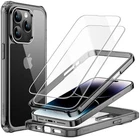 Case for iPhone 14 Pro Max 6.7-Inch with 2-Pack Tempered Glass Screen Protector| 360 Full Body Shockproof Bumper Phone Cover Protective Clear Back (Black) [360 Full Protection] Hard PC back cover| separated PC frame and tempered glass screen protector offer all-around protection. Incredibly defend your phone against heavy drops| bumps| shocks and scratches. NOTE: Not for iphone 14/ 14 Plus/ 14 Pro|[Premium Tempered Glass] The 9H hardness screen protector with oleophobic coating effectively protects the screen from daily abrasions| fingerprints and oil. Allow super easy installation without air bubbles|[Clear Back Cover] The back of the phone case is highly transparent to show the original beauty of your phone. Compatible with iPhone 14 Pro Max 6.7-Inch|[Thoughtful Details] The specially designed cushions in four corners are shock-absorbent. In addition| the 1.8 mm raised camera lip and 1.5 mm raised screen lip provide more protection to your device|[Wireless Charger Compatible] Seamlessly support wireless charging. No need to take the phone case off