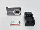 The Casio Exilim EX-S500 is a compact digital camera from the Casio EXILIM series. It features a 5.0 MP maximum resolution with both 3x optical and digital zoom capabilities, all housed in a sleek silver body. This camera includes built-in features such as a speaker, flash, and audio recording functionality, along with an auto power save mode for energy efficiency. Powered by a lithium-ion battery, the camera also comes with a charger and has been tested for functionality. great overall condition - light scratches on screen not visible when on, comes with new battery & Charger