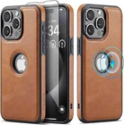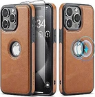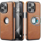 Casus Designed for iPhone 15 Pro Max Case Compatible with MagSafe Leather Slim Logo View Luxury Elegant Thin Cover with Tempered Glass Screen Protector (2023) 6.7" - Brown