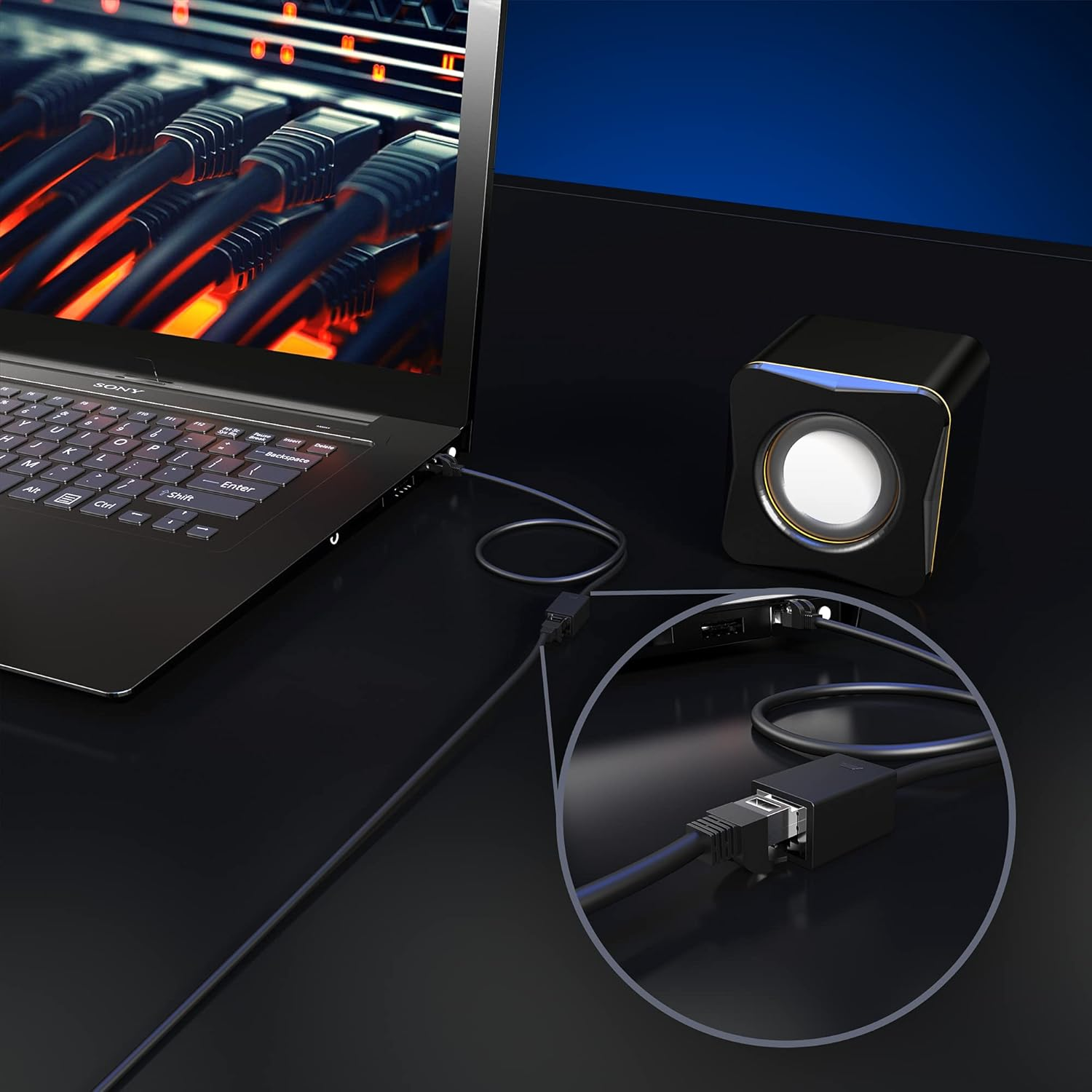 CAT6 ETHERNET EXTENSION CABLE. Our ethernet cable extender that stretches internet connectivity to a router or modem instead of buying another ethernet cable. Being male to female ethernet cable, it prevents your computer or laptop ethernet port from struggles of plugging and unplugging. This Cat 6 extension is easy to use when extending wired connection in small space and short distance. HIGH SPEED INTERNET TRANSFER. This ethernet extender can send data up to 1000 mbps and a bandwith of 550 MHz for its ethernet extension. With its ethernet extender adapter, it boosts internet transmission for ideal gaming, high definition video streaming, cloud computing, CCTV monitoring, and other applications. BUILT FOR LONG-TIME USE. This Cat6 cable internet extention is covered with high quality PVC jacket for durability and flexibility when bent without leaving any damages. Made of 4 pairs 100% oxygen free pure copper for stable and fast internet transfer and with well-attached male rj45 to female connectors that will not easily loosen making it a reliable ethernet port extension; compliant with category 6 TIA/EIA 568-C.2 standards. BROAD NETWORK APPLICATIONS. Compatible with various LAN devices, our ethernet to ethernet extender can connect to many ethernet patch networks such as PCs, printers, routers, network switches, VoIP phones, Xbox, PS2, PS3 and many more; and is backward compatible with cat5 and cat5e. Our rj45 cable extender is widely used at home or in the office as this can be an internet cable extender, modem cord extension, or cable for router to modem. AFTER-SALES CARE. On top of these features, we also provide a guaranteed one-year warranty for security and protection. Don't hesitate to contact us and our ready-to-help customer service based in the US will be glad to assist you. Ethernet Cable 6 ft CAT6 High Speed Internet Network LAN Patch Cable Cord - 20 Pack (6 feet, Black)