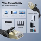 40Gbps 2000MHz High Speed : 200ft Cat8 ethernet cable offers bandwidth up to 2000MHz and data speed up to 40 Gigabits per second, ensuring high-speed data transfer for server application, cloud computing, and HD video streaming without any lag or stop Great Stability : Shielded gigabit ethernet cable Cat 8 is composed of 4 pairs stranded bare copper conductors, SSTP (Screened Shielded Twisted Pair) and 24K gold-plated RJ45 connectors with 50 Micron gold-plated pins. Our Cat 8 cable provides a better protection against crosstalk, EMI/RFI interference and ensures accurate data transfer. With molded strain-relief boots and snagless molds, the Cat8 cables provide durability and ensure a stable connection Flexible Flat Design : Slim Cat8 flat ethernet cable effectively avoids tangling and saves space . Flat lan cable is easy to pass through the carpet or door, hide or run along any surface More Applications : Our Cat 8 network cable provide universal connectivity for any devices with RJ45 port, such as computer servers, routers and other gaming system, etc. Cat8 patch cable is backward compatible with Cat5, Cat5e, Cat6, Cat6a and Cat7 ethernet cable Excellent CAT8 Internet Cables : Black Cat8 ethernet cable 200 ft comes with 60 cable clips (more or less). With upgrated PVC jacket, our Cat 8 ethernet cord is anti-corrosion, more sturdy, anti-aging and pull-resistant, could be used in wall or outdoor (cannot be directly buried)