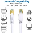 Haslo Tech Cat8 ethernet cable is your first choice for surfing the internet! Whether watching videos, listening to music or playing games, Haslo Tech Cat8 lan cable could make your network faster, more stable and more durable. We promise a 30-day refund and 2 years of free repairs for each cable. In addition, we also provide a lifetime of enthusiastic customer service to give you a satisfying customer experience. Specification ✔Length: 50ft ✔Conductor Guage: 26AWG ✔Cable Type: Category 8 (Cat 8) ✔Bandwidth: up to 2000MHz ✔Transmission Speed:up to 40,000 Mbps (40 Gbps) ✔Conductor Material: 100% oxygen-free copper ✔Cable Construction: S/FTP (Shielded Foiled Twisted Pair) ✔Connector Type: 8-pin 8-core shield gold plated RJ45(8P8C) ✔Contact Plating: 50 micron gold plated ✔Insulation Material: environmentally friendly PVC material Compatibility ✔Haslo Tech Cat8 internet cables are ideal for networking switch, routers, ADSL, adapters, hubs, DSL/cable modems, PS3, PS4, Xbox, NintendoSwitch, patch panels, servers, desktop computers, laptops, IP Cam, networking printers, NAS, VoIP phones, keystone jack, smart TV, Mac and other device with RJ45 connectors. ✔Compatible with Cat7, Cat6, Cat6e, Cat5, Cat5e and faster than them. Package Contents ✔1 pack - Haslo Tech Cat8 Network Cable 50ft-White ✔1 pack - Cable Clips ✔2 pack - Cable Straps ✔2 pack - RJ45 Connector Protection Caps Note Network speed is determined by many factors, such as cables, router, switch boxes, other network components, and also service provider. ✔Amazing Speed - Cat8 ethernet cable supports bandwidth up to 2000MHz and up to 40Gbps data transmitting speed, making it the fastest network cable standard available today. We also bundled with 30 cable clips and 2 cable straps for free. ✔High-Quality Construction and Material - Cat8 internet cable is made of 4 shielded foiled twisted pair (S/FTP) and multi-stranded OFC wires (26AWG) with a gold plated RJ45 connector on each end. Compared with previous network cable standards, the additional shielding and improved quality in twisting of the wires can reduce more crosstalk, noise, and interference. ✔Artistic and Durable Design - Cat8 ethernet cable 50ft is designed with white round network cable, easy to carry and network cabling. Cat8 lan cables are made of environmentally friendly PVC material, which is waterproof and UV resistant. Suitable for outdoor and indoor use. ✔Better Connector and Higher Standard - 50 micron gold plated contact pins in each shielded RJ45 connector are ideal for use in high-noise environments where shielding helps. Complies with these standards:IEEE 802.3bq 25G / 40GBASE-T, ANSI / TIA-568-C.2-1, ANSI / TIA-1152-A, ISO / IEC-11801. ✔Universal Compatibility - Cat8 network cabler is ideal for networking switch, routers, ADSL, adapters, hubs, modems, PS3, PS4, Xbox, patch panels, servers, laptops and more. And compatible with Cat7, Cat6, Cat6e, Cat5, Cat5e. Free maintenance for 2 years.