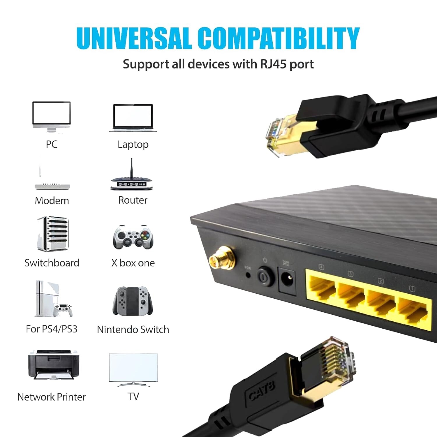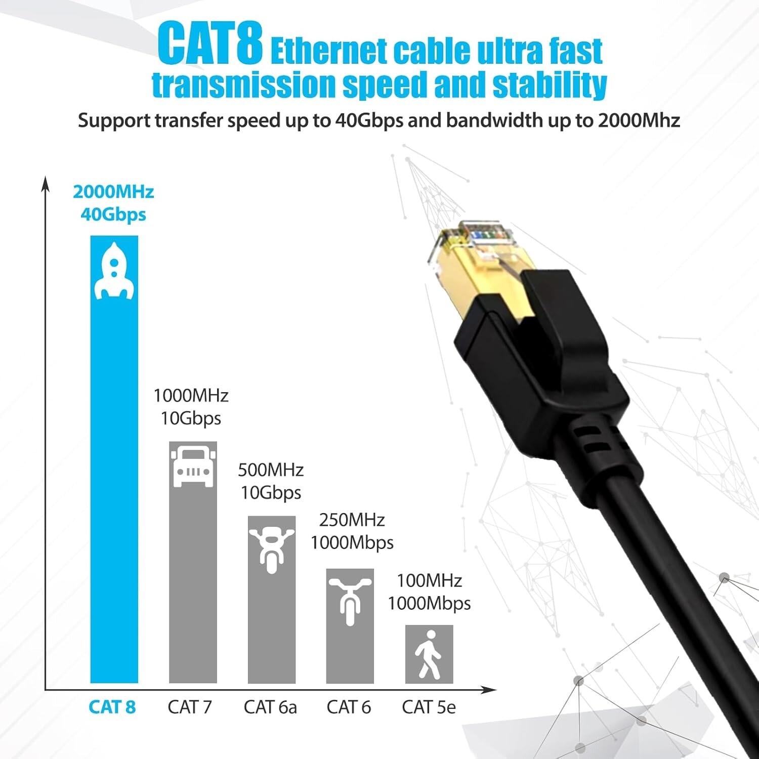 This high-quality Ethernet cable is perfect for any networking needs. With a speed of 40Gbps and a frequency of 2000MHz, it ensures fast and reliable connections. The cable is available in two lengths, 25 FT or 60 FT, and is compatible with universal brands and models. The black cable features a gold-plated RJ45 connector on both ends, making it easy to install and connect to your network. It also has a 26AWG thickness and is SFTP capable. This portable cable is perfect for those who need a reliable and fast network connexion.
