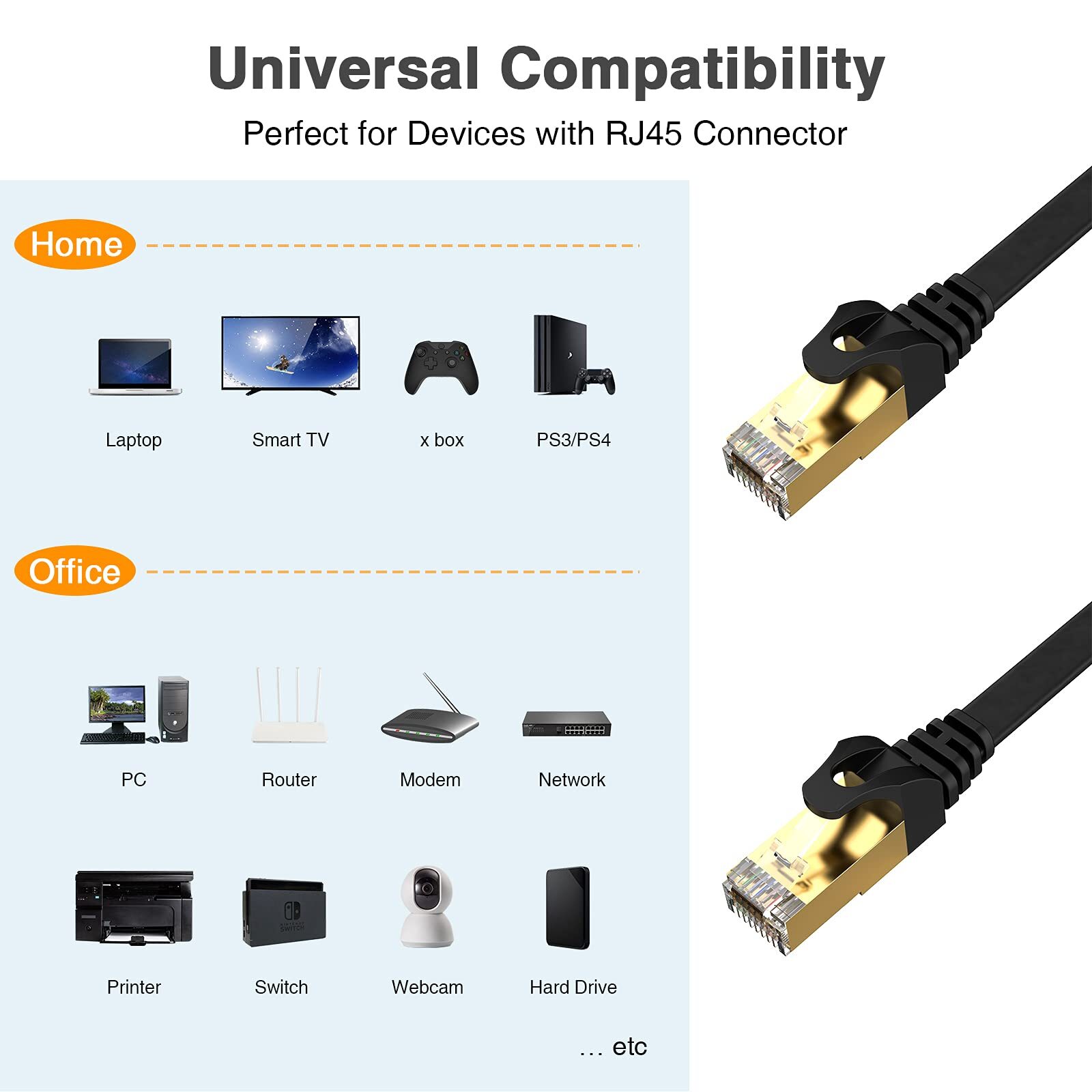β¨ Cat7 Ethernet Cable 15ft, CAT 7 Flat Internet Patch Cord for Router, Modem, Gaming, Hub,Computer - High Speed with RJ45 LAN Wire - Black β¨ π Product Overview π₯ Key Features High-Speed Connection: This Cat7 Ethernet cable features 2000MHz bandwidth and 40Gbps data transfer speeds for fast connectivity between devices on your home or small business network. Durable Construction: Featuring gold-plated RJ45 connectors and double-shielded wiring, this cable is built to last with protection against interference for a reliable connection. Wide Compatibility: The Cat7 cable standard ensures compatibility with all Cat5e, Cat6, and Cat7 devices, so it can be used to connect computers, routers, switches, gaming consoles, IP cameras and more. Long Cable Length: At 5 meters (16.4 feet), this cable provides sufficient length for convenient installation between devices without the need for additional couplers or joints. Smooth Installation: The flat cable design reduces bulkiness for an easy, hassle-free installation behind entertainment centers, desks or under carpets and rugs throughout your home or office space. π¦ Shipping Information We ship to the address provided on eBay. Please verify your address before purchasing. Orders will be processed within 1-2 business days and shipped promptly. Typical delivery time is 3-7 business days. If there are any issues with shipping, please contact us immediately. π Return Policy Returns are accepted within 30 days of purchase. Please ensure items are returned in their original packaging and condition. π³ Payment Methods We accept all major payment methods including PayPal and credit cards. π Contact Us If you need assistance, feel free to reach out via eBay messages for a prompt response!
