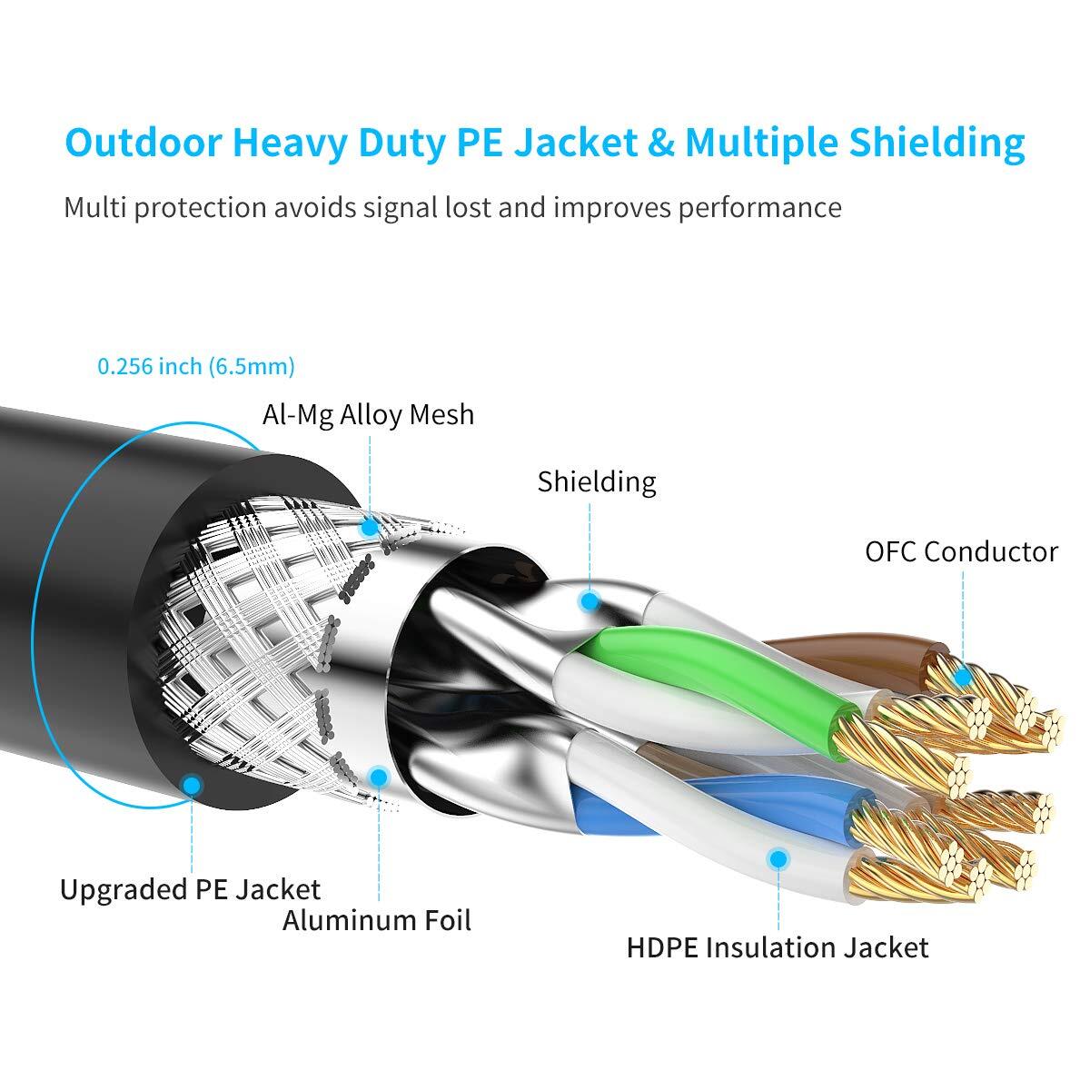 BIFALE Cat7 Ethernet Cable 25ft, Cat7 Outdoor Cable Triple shielding SSTP 10Gbps 600MHz Ethernet Patch Cable for Modem Router LAN RJ45, UV/Water Proof, Direct Burial, PE Jacket 【10Gbps & 600MHz】The transmission rate of cat 7 Ethernet cable is higher than cat5e/cat6a, support bandwidth up to 600MHz & transmitting data at speeds of up to 10Gbps. 【Direct Burial】Heavy duty upgraded outdoor PE jacket is more durable than PVC, be made of triple shielding(SSTP) & 100% 4N pure OFC conductors, our cat7 outdoor Ethernet cable can direct burial, UV/Water Proof, 26AWG, OD 0.256inch (6.5mm), protect against EMI/RFI, low signal attenuation for long distance transmission. 【Compatible】Compliant with ANSI/TIA/EIA-568-B. 2-10, 10BASE-T, 100BASE-TX (Fast Ethernet), 1000BASE-T/1000BASE-TX (Gigabit Ethernet) and 10GBASE-T(10-Gigabit Ethernet) at high speeds, also compatible with Cat5/Cat5e/Cat6/Cat6a Ethernet cable. 【Armour RJ45 & Application】Our cat 7 cable have heavy-duty 24k gold plated connectors, own better connectivity, 50 Micron Gold plated Contact Pins in each Shielded, anti-corrosive/corrosion/Oxidant, temperature tolerance range (-40℉ - 212℉). For Xbox One,Xbox 360, modems, PS3, PS4, CCTV, computer, laptop, networking switch, Hubs, routers, printers, ADSL, NAS, patch panels. 【Customer Service】If there are any issues with ethernet cable cat 7, please contact us. NOTE There have many factors that affect the speed of the network such as, router, network environment and so on Compatibility Routers Switches Xbox360 Network Printers Network Attached Storage Device Computer and network components and more Specifications - Jacket: Heavy Duty Upgraded PE Jacket - Cable Type: CAT7 4-Pair SSTP - Outside Diameter: 0.256inch (6.5mm) - Connector Type: Armour RJ45 - Conductor Material: 100% OFC - Contact Plating: 50 Micron Gold Plated - Conductor Gauge: 26 AWG - Cable Performance: Up to 600 MHz - Temperature tolerance range: (-40℉ - 212℉) SHIPPING - We offer FREE shipping on all orders! - We ship within 3 business days of payment, usually sooner - We only ship to the lower 48 states, no APO/FPO addresses or PO Boxes allowed International buyers – please note: Import duties, taxes, and charges aren't included in the item price or postage cost. These charges are the buyer's responsibility. - Please check with your country's customs office to determine what these additional costs will be prior to bidding or buying. - We have confidence in our products, but if you are not fully satisfied please contact us within 30 days of purchase and you will get full refund. * Order Cancellation Policy ** You can return a product for up to 30 days from the date you purchased it. 1. The seller reserves the right to cancel the special case only due to eBay cancellation fee. 2. The decision of seller is the final. 3. The seller will respond to the cancellation request within 2 business days. Please wait for the result of cancellation. 4. In case the cancellation is not completed by some reasons, the buyer can follow the options below to get the refund. 4.1 The buyer can reject the item when it arrives. 4.2 The buyer can send the item back to the seller within 30 days If the buyer receives item (USA Shipment ONLY). The seller will provide the FREE return label to the buyer when the buyer opens " Return Item" case on eBay by using the reason as "Change my mind" ONLY. 5. When buyer has placed the order. The order will be processed and completed by automatic warehouse system within 5 minutes. In case that buyer sends the cancellation request after 5 minutes of placing the order, the request will be rejected. **Sending direct message to cancel the order is not allowed for every case.* Return Policy For the return case - If buyer would like to return the items for refund or replacement, please CONTACT SELLER to receive the free return label from seller. The refund or replacement will be processed with the tracking number of return label which is provided by seller only. The other ways of return which are not approved by seller will not be processed for the refund or replacement.