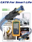 Cat8 Flat Ethernetcable is your first choice for surfing the internet! Cat8 internetcable is the BEST CHOICE EXPERIENCE for surfing the internet, playing games,streaming videos and without worrying about the transmission jam. We promise a 30-dayrefund and 2 years of free repairs for each cable. In addition, we also providea life time of enthusiastic customer service to give you a satisfying customer experience. Specification Length: 3ft Conductor Guage: 26AWG Cable Type: Category 8(Cat 8) Bandwidth: Up to 2000MHz Transmission Speed: Up to 40,000 Mbps (40 Gbps) Conductor Material: 100% oxygen-free copper Cable Construction: S/FTP (Shielded Twisted Pair) Connector Type: 8-pin 8-core shield gold plated RJ45(8P8C) Contact Plating: 50 micron gold plated Insulation Material: Environmentally Friendly PVC Material Reference Standard: IEEE 802.3bq 25G / 40GBASE-T, ANSI/TIA-568-C.2-1, ANSI / TIA-1152-A, ISO / IEC-11801 Compatibility Cat8 LAN cables are ideal for networking switch,routers, ADSL, adapters, hubs, DSL/cable modems, PS3, PS4, Xbox, patch panels,servers, desktop computers, laptops, IP Cam, Poe, networking printers, NAS,VoIP phones, keystone jack, smart TV, Mac and other device with RJ45connectors. Compatible with Cat7,Cat6, Cat6a, Cat5, Cat5e and faster thanthem. Package Contents 1 pack - Cat8 Network Cable 3ft 2Pack-White 1 pack - Cable Clips 2 pack - RJ45 Connector Protection Caps Note The Lab Data shown aboveis the theoretical value. The actual internet speed may be affected by relateddevices (router,switch,etc). ✔ Upgraded Blue Hyper Speed - Cat8 ethernet cable 3 ft boosts the speed of data transmission up to 40Gbps, 2000Mhz. Cat 8 internet cable is 4x Faster than Cat 7. Also bundled with 10 cable clips and 2 cable straps for free. ✔ Premium S/FTP Structure - Cat8 internet cable is made of 4 shielded foiled twisted pair (S/FTP) and 100% OFC wires (26AWG) with a gold plated RJ45 connector on each end, It's efficient in reducing EMI/RFI Interference and provide highest fidelity for 100FT long distance data transmission. Cat8 cable is a lot faster and stable in data transfer when compared with other 32AWG Ethernet cables. ✔ Flat Design & Outdoor Cable - Cat 8 Patch cord ethernet cable are in flat design to make it can run under the carpet rug or carpet. CAT 8 ethernet cable is waterproof & anti-corrosion and more durable & flexible for heavy duty work; Indoor and outdoor conditions are permitted to install, also direct burial. ✔ 2× Braided & Incredible Durable - The military grade tensile nylon material, and gold-plated connectors all ensure this Cat8 ethernet cable superior durability under heavy usage and multiple plugging and unplugging. The tail's anti-bending design has been upgraded to make it more durable, so this cat 8 patch cord can be bended at least 10000+ times. RJ45 connectors fit nicely with the socket and can withstand 10000+ plug/unplug without appearing loose contact ✔ Wide Compatibility & 10 Years Service - Cat8 patch cable is Compatible with popular and latest devices including switch, router, modem, Xbox, PS4, server, laptop, computer and more. Also compatible with Cat7, Cat6, Cat6a, Cat5, Cat5e. Free maintenance for 10 years.