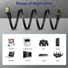 flat ethernet cables help people looking for fast speed! ▶ Did you feel frustrated when your on-line game was lagging and they kicked you from the online matches? ▶ Did you feel painful for prolonging hooking up your working system, which decreases your working efficiency? ▶ Did you feel annoyed when the poor speed network makes your video chatting, download delay? If you having the above issues in connecting the network, why not try to buy one flat ethernet cable? flat ethernet cable can significantly increase your upload and download Internet speed beyond what the CAT7/CAT6/CAT5 cable you had been using. Advantage : ---❥ Using 100% Oxygen-free copper, built-in SSTP, rj45 gold connector,our CAT 8 ethernet cables support data transfer speed up to 40Gbps/ bandwidth can be up to 2000MHz, which makes it more stable and low resistance. ---❥ The unique flat design makes it easy to route neatly and tuck away.Coated high-quality environment friendly PVC, which will make this cable flexible and softy touch. Unlike the stiff round cable, It doesn't flex very well and feels like it'll crack if you bend it too much. ---❥ Meet all CAT 8 cable requirements and compatible with older CAT7, CAT6, CAT6e, CAT5, and CAT5e cable standards. ---❥ Suitable for home networks, Switch, Modem, Router, Patch Pannel, Network printers,Projector, Xbox, PS2, PS3, PS4 and Game boxes with RJ45 port, etc. Specifications: - Core: 28AWG 100% oxygen-free copper - Shield: Alum-foil+ground line(STP) - Wire: 4 shielded twisted pairs - Rate: 40Gbps - Bandwidth: up to 2000MHz - Connector: RJ45 Noted: Cable Clips just Free for over 15FT length ethernet cables. Getting the cables,you will get less hassle. High-Speed Cat8 Ethernet Cable: Up to 2000MHz bandwidth and 40Gbps data transmitting speed, the fastest and newest version CAT8 SSTP Patch Cable is an ideal choice for connecting computer, laptop, modem, router, network printer, switch, PS3, PS4, X-box, patch panels and AI smart products at maximum speeds. Compatible with Cat5e Cat6 Cat6a Cat7 network cable. No more worries about slow network speed, improving your working efficiency or enjoying a better gaming experience. Flat Design for Easier Installation: Different from the round rigid and bulky lan cable, Flat Cat 8 Ethernet cable is flexible that can be wired up along your house or office. You can route the cables along the edges or corners of the wall easily and seamlessly, or even put them under the carpet as invisible. No worry that your cables are messing or taking too much place. Besides, the black color is resistant to dirt, ideal for outdoor or indoor. Strong Anti-interference Ensure Stable Network: Made of 100% Oxygen-free copper inside, 4 pairs of 28AWG pure thick twisted-pair copper wire to achieve high-speed transfer. RJ45 connectors on each end with gold plating ensure universal connectivity effectively reduce signal interference and signal attenuation. Aluminum foil provides better protection from crosstalk, noise, degrade signal interference and signal attenuation. Flexible And Durable: Wrapped with 0.25 in (Width)*0.11 in (Thickness) soft environmental outer PVC, Flat Cat 8 Ethernet cable is wear-resistant and waterproof, which can more effectively prevent EMI/RFI interference and signal attenuation even in long-distance transmission. This high-quality UV-resistant PVC outer jacket is ideal for outdoor, so it can withstand direct sunlight and extreme cold. Great Networking Compatibility: This Cat8 Ethernet Cord works perfectly with networking switch, router, modem, PS5, PS4, PS3, Xbox, networking printer, laptop, coupler, hub, smart TV, patch panel and other devices with RJ45 connectors. It's an ideal High Speed Ethernet cable if you want to use the full speed of your internet for home, office, school, hotel, Internet cafe, computer data center, cloud server, enterprise server, etc. Backward compatible with Cat7/Cat6/Cat5/Cat5e Patch Cable.