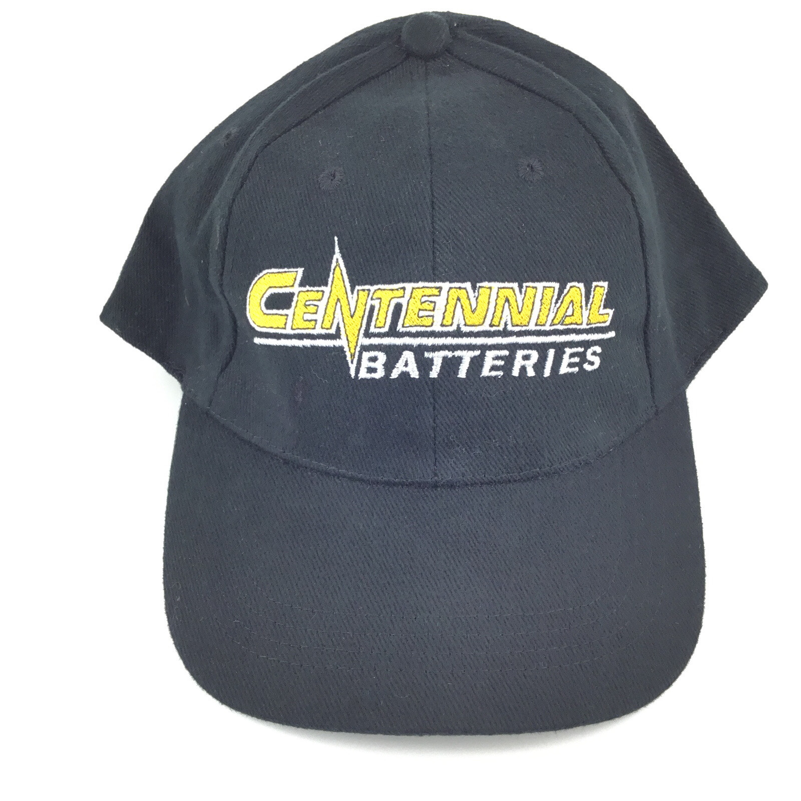Centennial Batteries Embroidered Logo Baseball Cap "Start With The Best" embroidered on the back P re-owned. Carefully hand-washed & air dried 100% Cotton Color: Black Adjustable strapback - fits most E bay 30-day return policy