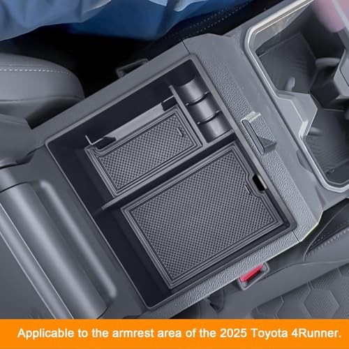Center Console Organizer for Toyota 4Runner 2025 2026 Accessories Armrest Storage Box ABS Plastic Tray Coin Holder Multi-Layer Storage Solution Center Console Organizer for Toyota 4Runner 2025 2026 Accessories Armrest Storage Box ABS Plastic Tray Coin Holder Multi-Layer Storage Solution Designed specifically for 2025 and 2026 4Runner models, ensuring a perfect fit without interfering with armrest operation. Dual-layer design maximizes storage with a top tray for small items and a lower compartment for larger essentials. Built-in coin holder keeps coins secure, reducing noise and providing easy access. Made from durable ABS plastic for long-lasting use and a sleek interior look. Features textured rubber pads to prevent movement and keep items stable during driving.