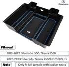 Center Console Organizer Tray Compatible with Silverado/GMC Sierra 1500 2019-22 & 2500HD/3500HD 20-23 [ Fitment ] - Center console organizer compatible with 2019-2022 Silverado 1500/ Sierra 1500, 2020-2023 Silverado/ Sierra 2500HD/3500HD, only fit full console with bucket seats. [ Note ] - NOT fit Silverado WT/ SSV/ LT/ Custom/ Custom Trail Boss. NOT fit Sierra Base/ SLE. [ Premium Material ] - Center console organizer made from premium material--ABS material, which is sturdy and durable. Accompany your Silverado or Sierra for a long time. [ Organizing Assistant ] - Its funtion is to organize the clutters to their certain place. Come with soft liner, can effectively reduce the rolling of items. [ No Modification Needed ] - Same size as the original center console. No needed to modify one more time. A hole is left for light to shine the center console, convenient to find and reach items. Top-Notch USA Seller | S wift USPS/UPS delivery | Shipped within 1 Business Day | Quick Replies | Free Shipping | Prompt Communication Contact us We value open communication with our customers. Our team is committed to providing quick responses to any queries or concerns you may have regarding our products or your order. Please feel free to contact us on eBay's Internal Message System for any questions or concerns you may have. Our dedicated customer service team is committed to providing exceptional support and ensuring your shopping experience with us is nothing short of excellent. Customer Service We strive to offer the best quality products to our customers. Each item listed in our store undergoes rigorous quality checks to ensure customer satisfaction. If you have any problems, we are very glad to help you. Please message us directly through eBay for faster response. Your inquiry is important to us and we'll respond within 24 Hr. Your order will be shipped within 1 business days upon full payment received. [ Due to the different monitor and light effect, the actual color of the item might be slightly different from the color showed on the pictures. Thank you! ]