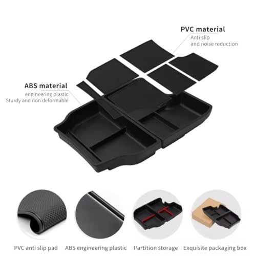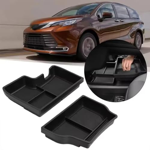 Center console organizer tray compatible with Toyota Sienna 2021-2025, 2-Pack Perfectly fits Toyota Sienna XL40 4th Gen 2021-2025 with OEM design. Made of durable ABS plastic with a scratch-proof flocking interior. Compartmental design for organized storage and hidden space creation. Stable installation ensures no slipping and maintains visibility. Easy installation with no tools required, fits snugly in the console.