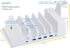 Charging Station 150W w 2 USB C 4 USB Fast Charging Wireless Charging Seats ⭕A Charging Station with USB-C , USB & Wireless Charging(x3), totally 150W goes REAL FAST CHARGING, if you really need this one ?? ✅There are 3 Wireless Charging in this Charging Station. ONE 15W Wireless Charger for Mobile Phones at the front as a mobile phone holder, so you can keep Watching & Charge. TWO Wireless Charging Seats for AirPods or other Bluetooth Buds, to charge wirelessly at the same time. So, JUST DROP THEM IN ! ✅There are 2 USB-C ports. One USB-C at the front, goes PD SUPER QUICK CHARGING for iPhone14 pro , iPhone 14 , 13, 12, 11, X at the TOP CHARGING RATE for apple moblie series( 27W max ). One USB-C at the back, for Charging Macbooks, Laptops, Tablets , etc. Of course, compatible with Samsung devices, Pixels, Nexus, HTC, Sony, LG, Motorola, and more. ✅Providing 4 USB-A ports at the middle, so you can charge 4 tradition electrical devices using USB cables, e.g. Mircro USB, USB-C etc. ✅1 iWatch-Holder for holding your iWatch wireless charger to Charge iWathches ( just A HOLDER, iWatch charger NOT provided !) ✅The USB-C port at the back, with real INDIVIDUAL 65W charging rate, that supports almost ALL SUPER QUICK CHARGING for moblie phones, iPads, Tablets, AND EVEN MACBOOKS, LAPTOPS, NOTEBOOKS that require a 20V electric supply! YES, our station, 600+Grams, can holds all your devices FIRMLY, and Charges them quickly! ✅JuSoFU, we design & produce our products to ensure bringing you a Great Experience. Get one, YOU WILL KNOW how powerful and convenient this device brings. TRY IT, YOU & Your Famliy, even KIDS WILL LOVE IT! ⭕So, would you Try This ?! ------------------------------------------------------------------------------------------ Shipping Policy: Domestic lower 48 states shipping is free and expedited. Shipping is also free to the rest US states and US Protectorates including Puerto Rico, Alaska, Hawaii, APO/FPO, but delivery times are longer than usual. If you need your order by a specific date please contact us before you make the purchase for a delivery estimate. ------------------------------------------------------------------------------------------ Return Policy: Your satisfaction is guaranteed! If for any reason you are unhappy with your item, just return it within 30 days for a full refund. Please contact us prior to initiating a return so that we can issue you a refund authorization.