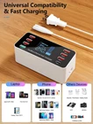 1.Fast-Charging Technology Intelligently detects your devices automatically and deliver the fastest possible charging speeds. Uses Qualcomm Quick Charge 3.0 and PD to deliver charging speeds up to 4X faster than standard chargers. 2.Accurate LCD Display Euqipped with a LCD digital display, intelligently shows the current and charging status for each charging port on the screen. Now the high technology and intelligence are visible.The display will not go out, the soft light design does not strongly stimulate the eyes 3.Desktop Organizer 8 ports pump out total 60W of power, enough for the whole family to charge simultaneously. Reduce the number of USB wall chargers required. ideal for home, office and travel. 4.Advanced Safety Features Made of -resistance PC shell and 100% copper wire, with professional management system, provide surge protection, short circuit prevention, temperature control, and more to give you and your devices total protection. 5.Strong Compatibility Compatible with iPad 2/3/4, iPad Air, iPad Mini, X/ 5/5s//6/6S/6 plus/6S plus, 7/7plus, 8/8plus and more and ipad Compatible with Galaxy Tab A/E/S, S6/ S6 edge,S7/ S7 edge, S8, Note 2/3/4 Compatible with , HTC, Sony, Nexus, , , Asus, Acer, Nokia, Bluetooth headset, Bluetooth Speaker and other Android/ Windows tablets Specifications: 1. USB Ports Included: 6 * Regular, 1 * QC 3.0, 1 * PD 2. QC 3.0 USB Port Output: 5V/3.4A, 9V/2A, 12V/1.5A 3. Regular USB Ports Output: 5V~2.4A 4. PD Port Output: 5V/3A 5. Total Output: 60W ✅【CHARGING STATION FOR MULTIPLE DEVICES】 The charging station (60W 8-Port USB charging station) provides fast charging for all your 5V devices. This multi USB charging station is perfect for households and businesses with multiple gadgets ✅【MULTI-PORT AND FAST USB CHARGING STATION】 This charging station features 8 ports for simultaneous charging. The USB charging station ensures all your devices get charged quickly and efficiently. Ideal for those needing a multiple USB charger station ✅【COMPATIBILITY USB CHARGING STATION】 The charging station supports a wide range of devices, Including smartphones, IPad, and e-readers. This charging station for multiple devices eliminates the need for multiple chargers, Making it a versatile multi USB charging station ✅【WIRELESS AND SCREEN DISPLAY USB CHARGING STATION】 The charging station includes wireless charging capability and a screen display for monitoring. This multi charging station keeps all your devices powered and organized, Making it one of the best chargers for multiple devices ✅【RELIABLE USB CHARGING STATION】 The charging station for multiple devices delivers reliable power management. This multiple USB charger station ensures efficient charging for all your gadgets, Making it a top choice for a Multi USB Charging Station.
