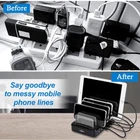 Actual color: white **Ships in 2 business days About this item ⚡The fastest charging technology – this 6-port charging station (2xPD-20W+1xQC3.0-18W+3x4.8A) has two built-in USB C power sources, which can charge mobile phones including iPhones at a charging speed of up to 100 %, save your time, and will not power off your device. The other 3 ports have high-power fast charging ports totaling 4.8A, which are suitable for power-consuming devices such as tablets and large smart phones. ⚡The docking station and 6 ports phone chargers are necessary for the family, hotel, or company. Multi-USB chargers provide a one-stop charging solution to charge multiple devices. The PD USB charging hub can be used with most USB powered devices (such as iPhone 12/12 Pro/12 Pro Max, iPad Pro/Air, iWatch, Macbook Pro/Air, Dell XPS 15/13 and Android smartphones, tablets, Kindle, Earplugs, etc.) work together smoothly. ⚡84W PD USB-C port, including 6 charger cables – TZONOO 84W 6-port charger station includes 2 iPhone charging and sync cables, 2 micro cables, and 2 type C cables. The PD USB-C port is up to 20w. After installing the smart chipset, the charging base can automatically recognize your device and provide the corresponding current. ⚡Innovative removable baffle design, neat and orderly-no more messy cables. You don’t have to plug a bunch of charger laptops into the socket for every phone, tablet, or USB-C. A workstation for charging multiple devices, putting everything in one place, nice & clean.You can lying flat or lying on your side to charge. It saves a lot of space and is easy to use. ⚡Absolutely safe and protected-the best gift. The TZONOO charging station has an advanced circuit to prevent short circuit, overvoltage, overcurrent, and overcharge. The input voltage range is 100-240V. Built-in 100% high-quality copper wire, high-standard quality control. One of the most memorable gifts you can give