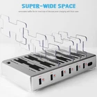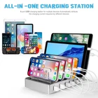 6 IN 1 Charging Station: Our multiple phone charging station comes with all types of charging cables, includes 4 lightning cables, 1 type-c USB cables, 1 micro USB cable, plus 1 Apple-compatible cable. The multi device charger allows us to charge up 6 devices combination simultaneously with high speed Fast & Safety: This multiple usb charger station organizer combines with 6 smart ports ensures fast charging, will speed up to 80% than regular USB charger station. With short-circuit, overheat and overcharge protection, this multiple usb charger station will make your devices safer and more efficient to charge Practical & Sturdy: Made of premium plastic, the removable dividers are strong and wide enough to hold your large tablet devices with protective cases. Anti-slip rubber surface among wide slots will protect your devices from accidentally slipping off Universal Compatibility : The USB cellphone charging station is compatible with iPhone, Android phones, tablets, iPad, Kindles, and other consumer electronics. Designed to be compact in size, the multi charger station is easy to carry. Suitable for travel. Widely used in your home, hotel, office, school, and more More organized: With 6 smart USB ports , the device charging station puts all your devices in one place, perfect for charging your smart phone, power bank, tablet and other devices. Great organizer for reducing wall chargers, keeps your table neat and organized. No more cluttered cables