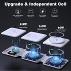 ✨3 in one Fold Up Charger Station: The wireless charging pad contains a magnetic suction, which can automatically and accurately charge the Apple 12 and above series. The magnetic suction is suitable for iPhone 16/16 Plus/16Pro/16 Pro max15/15 Plus/15Pro/15 Pro max/14/14 Pro/14 Plus/14 Pro Max/13/13 Pro/13 Pro Max/12/12 Pro/12 Pro Max. It is also compatible with Apple Watch Ultra 8 7 6 5 4 3 2 & AirPods with wireless charging. 📲Wireless Charging Station for Travel: Portable and foldable wireless charger that can charge for your iWatch, phone and AirPods at the same time. Lightweight and compact design, easy to carry around, it is a good companion for charging at home, office and travel. 💫Compact Easy to Use: It only need one cord to charge three Apple products at the same time. The 180° foldable charging mat can be changed into a phone stand in seconds, and you can be placed horizontally for watching, chatting, entertainment, and office while charging the device. 💨Safe Fast Charging: Our wireless charger is FCC certified, equipped with 18W adapter and a cable, the product adopts intelligent protection technology, provides temperature control, overvoltage protection, short circuit protection, overcurrent protection, to ensure that your product safe and fast charging. 🤩What You’ll Get: The package includes a wireless charger, Free 18W adapter, one charging cable, user manual. If you have any problems during use, please feel free to contact The Shiny Shop! UCOMX Nano 3 in 1 Wireless Charger is a magnetic foldable charging station with 3 ports, compatible with various Apple devices like iPhone 14, Apple Watch, and AirPods. It provides wireless charging at 9V voltage and includes a charging cable. The charger utilizes a magnetic wireless charging standard and features a magnet mounting type.
