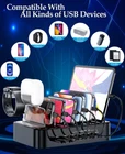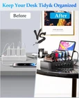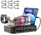✔100W Supercharged Power: Upgrade from standard chargers to 100W phone charging station for multiple devices. This tablet charging station for multiple devices android has 4 PD USB-C and 2 USB-A ports, which make 6 devices charge quickly at the same time, keeping your devices ready for use and maximizing efficiency ✔4x 20W PD Fast Charging: Equipped with 4 powerful 20W PD ports, this multiple charging station for apple devices delivers fast charging, powering up to 4 devices simultaneously. Our multi device charging station charges your phone 2 times faster than a standard charger. With more phones no longer including chargers, this station is your go-to solution for quick, efficient charging ✔Ready for the Future: Embrace the future with USB-C! As electronics devices evolve, USB-C port connections are becoming the standard. Our multi port usb charging station and dock’s 4 PD USB-C ports ensure you’re not left behind, offering faster charging and greater compatibility with the latest gadgets ✔Safe & Intelligent Charging: Charge with peace of mind. Our laptop charging station organizer is crafted from flame-retardant ABS material and equipped with smart protection against overcharging, overheating, and short circuits. Anti-slip pads on the base ensure your devices stay secure and your desk remains scratch-free ✔Universal Compatibility: Whether it's for Phones, Galaxy S23, Pads, Kinde, or smartwatch, this fast charging station usb c charging dock has got you covered. Multiple device charging station organizer includes 6 mixed cables, 6 removal dividers and a dedicated stand for watch and AiPod—everything you need for a seamless charging experience ✔Clutter-Free Convenience: Tired of tangled cords and messy desks? Our sleek, compact design keeps your workspace neat by organizing all your devices in one place. No more searching for multiple chargers—just plug in and power up. Ideal for home, office, or travel—this multi phone charger station for multiple devices is the ultimate all-in-one charging solution